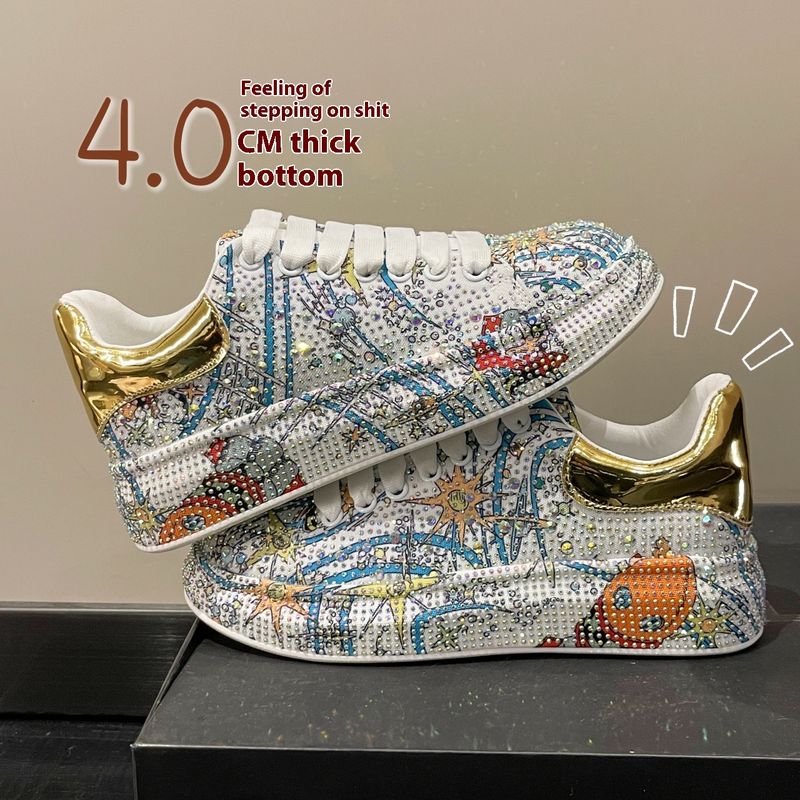 Graffiti Water Diamond Dad's per donna 2023 Primavera Nuovo Song Cake Sole Trendy Cool Light Luxury Single Shoes