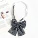 Cravatta a farfalla senza nodo, stile college, da donna, uniforme accademica, accessorio per camicia da uomo, a quadri a righe grigie