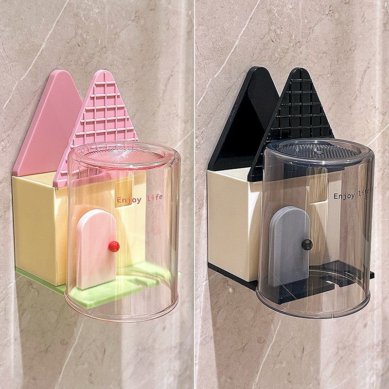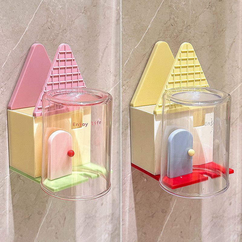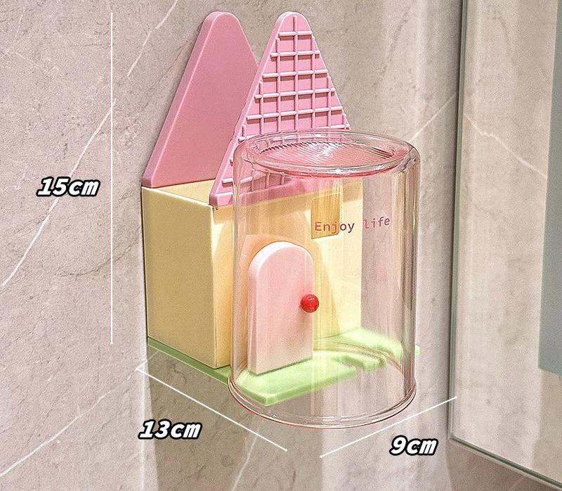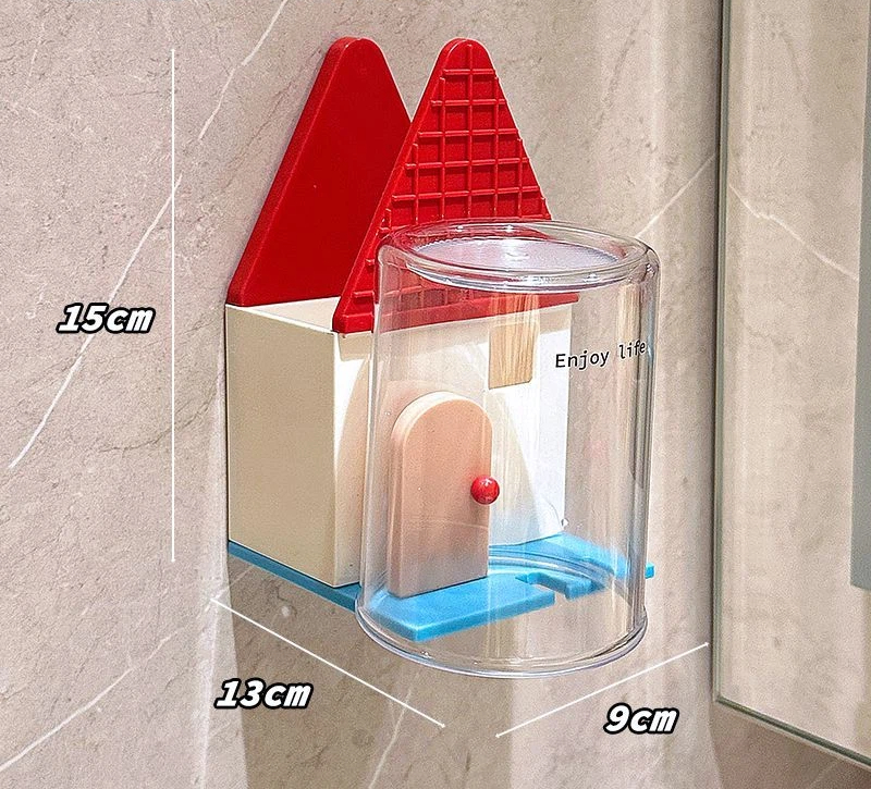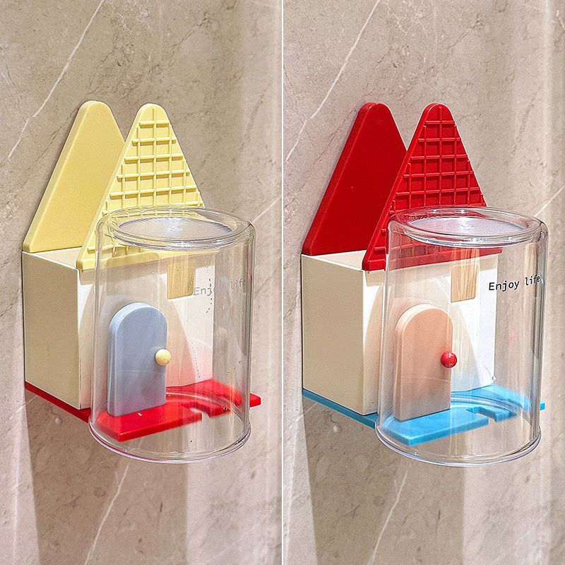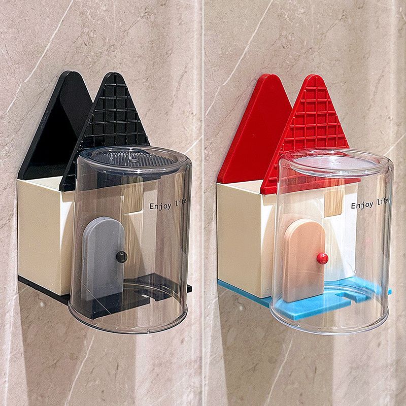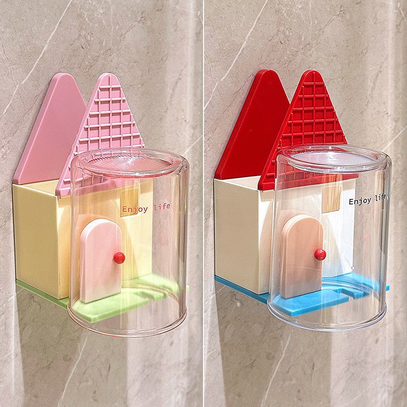Graziosa casetta, portaoggetti per bicchieri da denti, dormitorio, bagno di casa, montaggio a parete, portaoggetti per spazzolini da denti senza forare