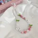 Grazioso ciondolo a forma di ciondolo per cellulare con perline color pesca, gioielli per ragazze e donne, cordino a forma di fiore di perle per portachiavi per iPhone