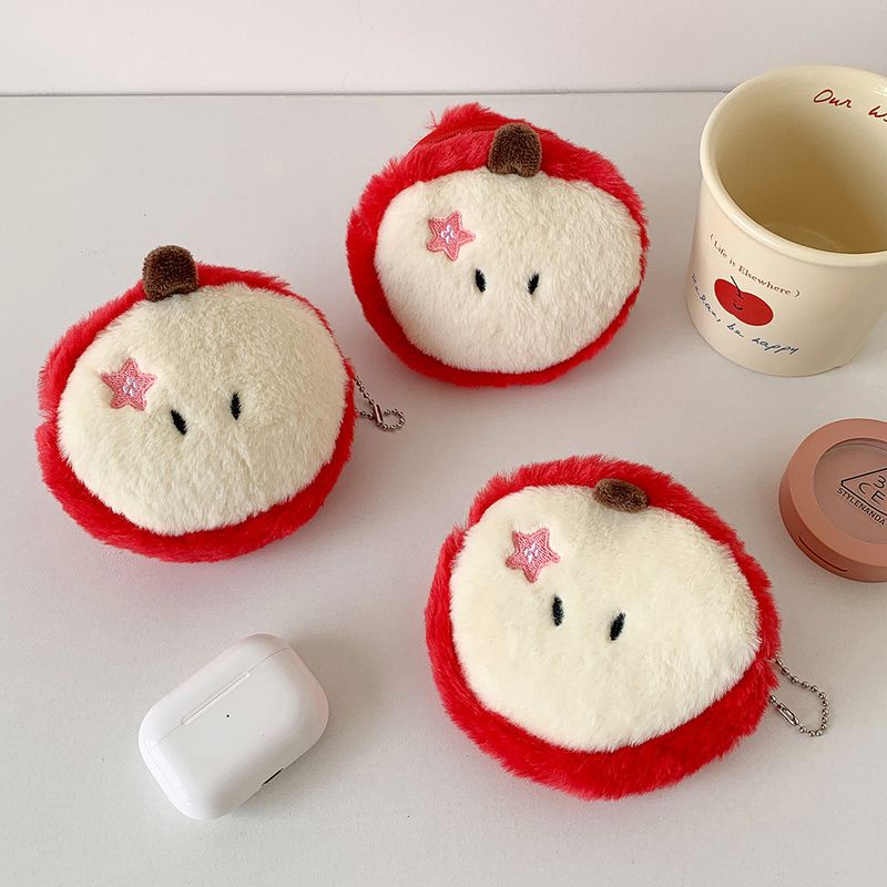 Cute Apple Coin Purse Creative Cartoon Plush Pendant Mini Bag Student Earphone Bag Data Cable Storage Small Bag