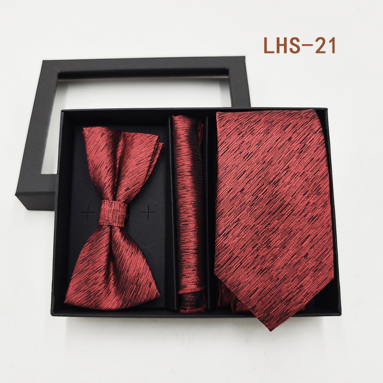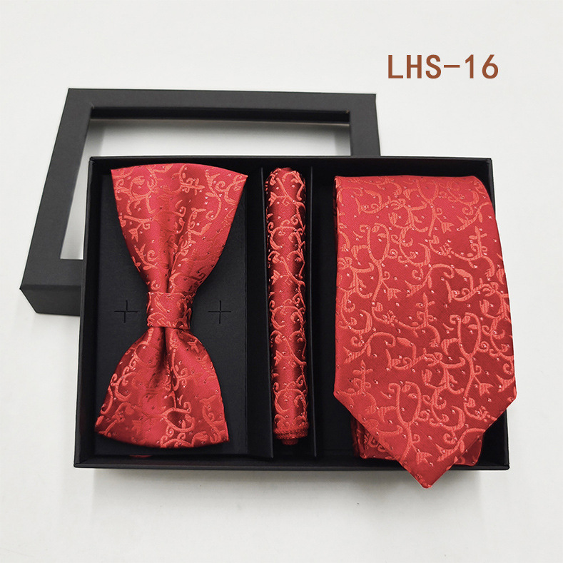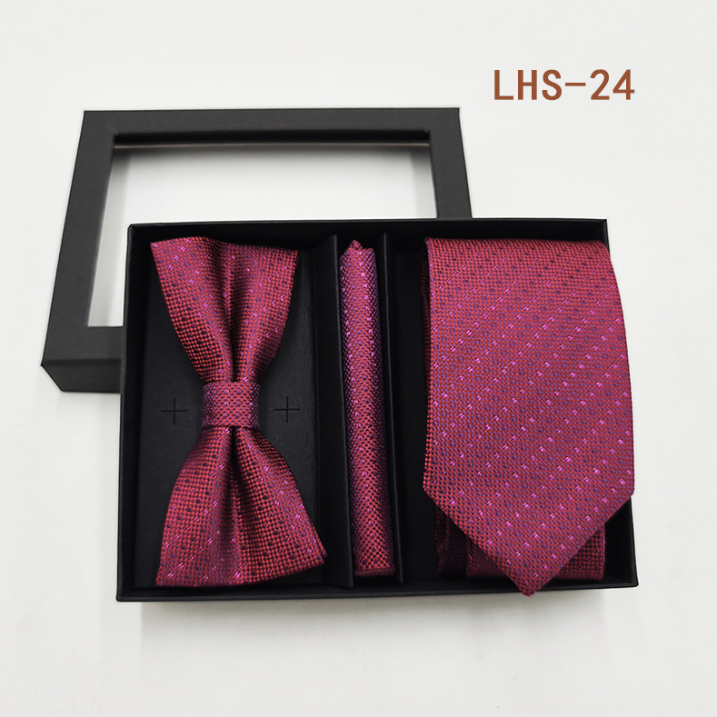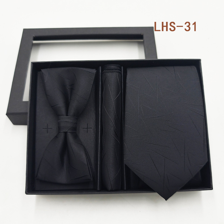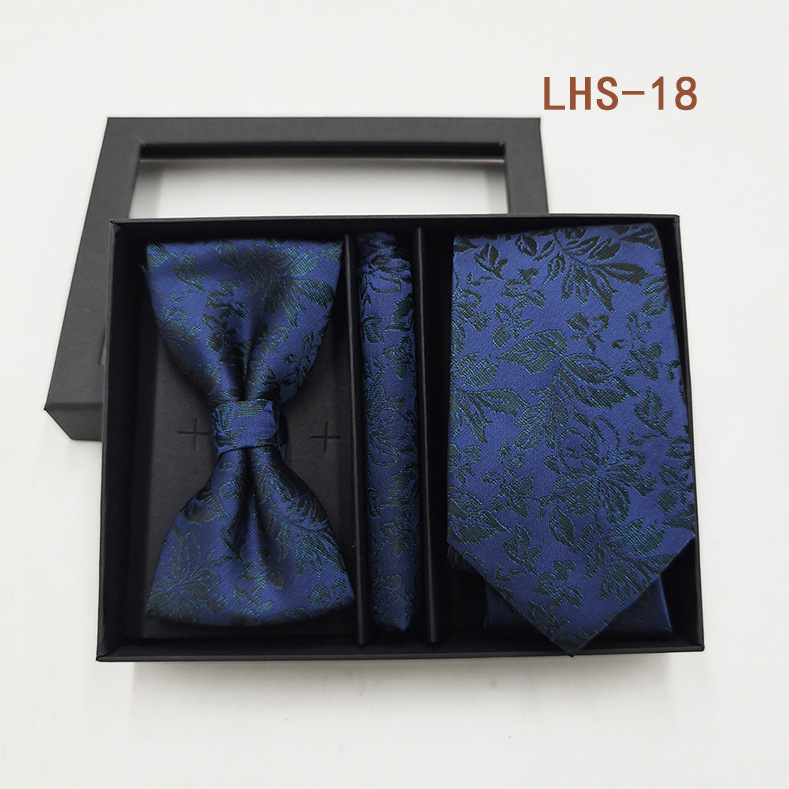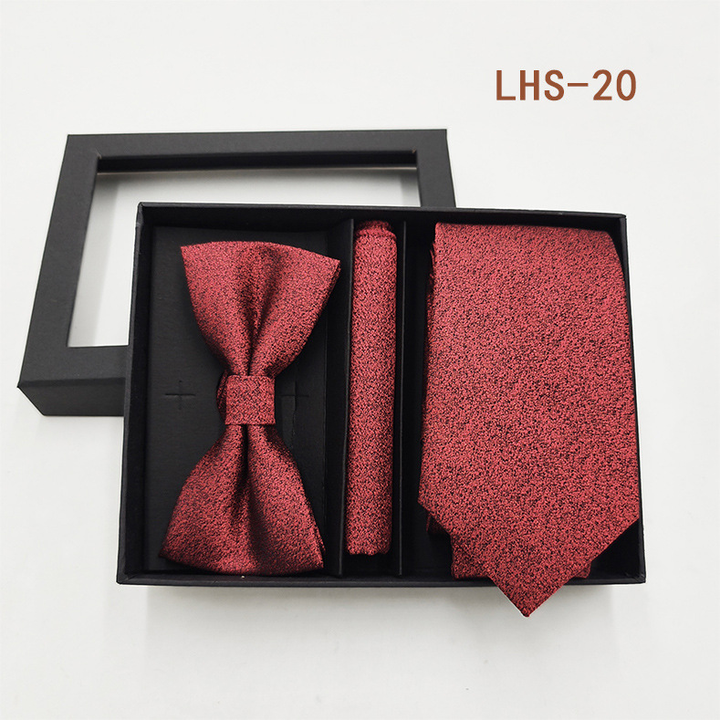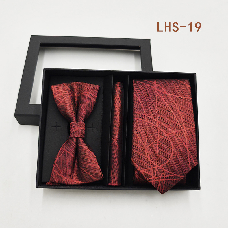 Groom Wedding Tie Bow Tie Handkerchief Gift Box Set Three-Piece Men's Formal Business Suit Accessories Set