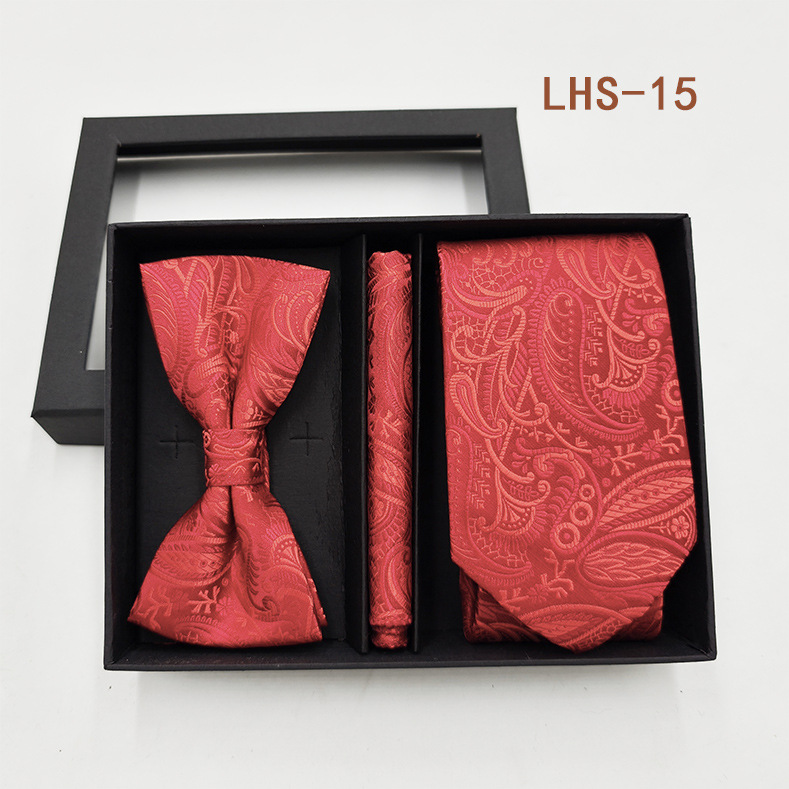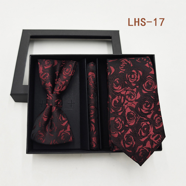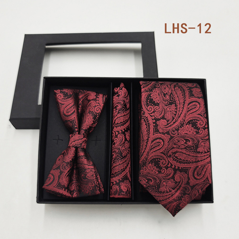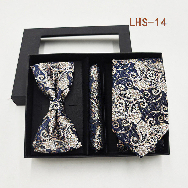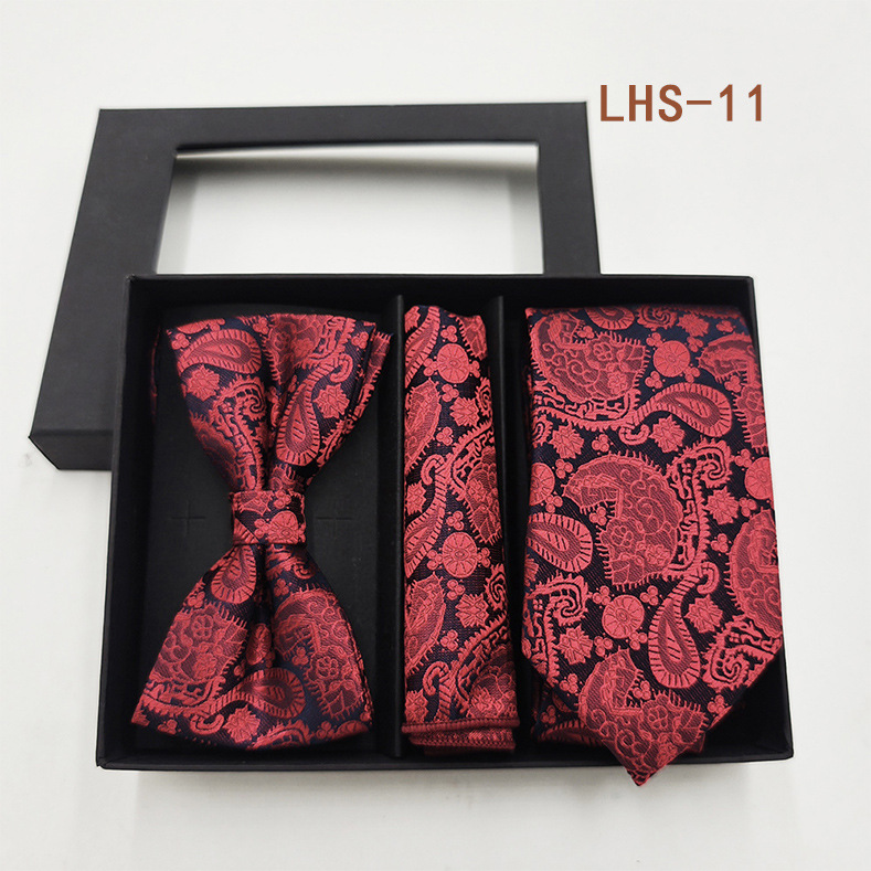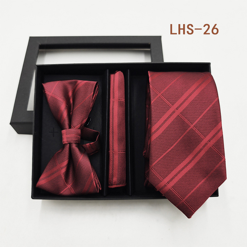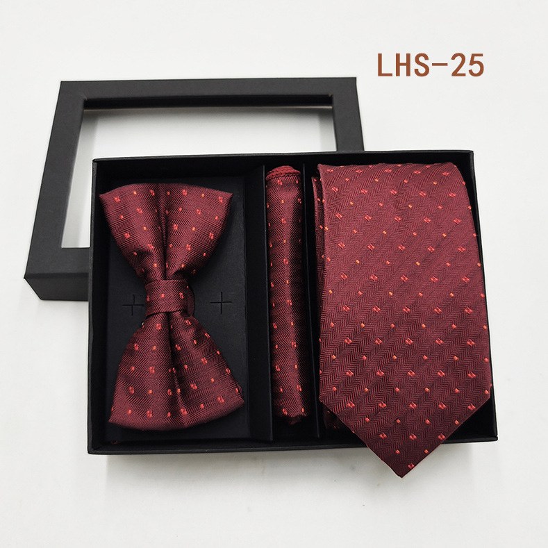 Groom Wedding Tie Bow Tie Handkerchief Gift Box Set Three-Piece Men's Formal Business Suit Accessories Set