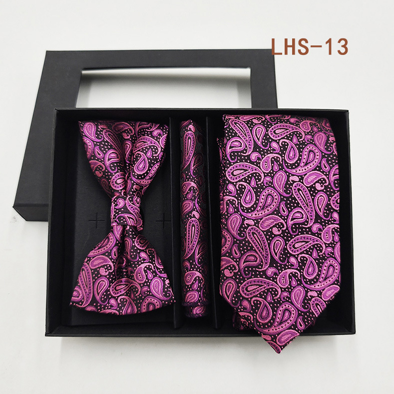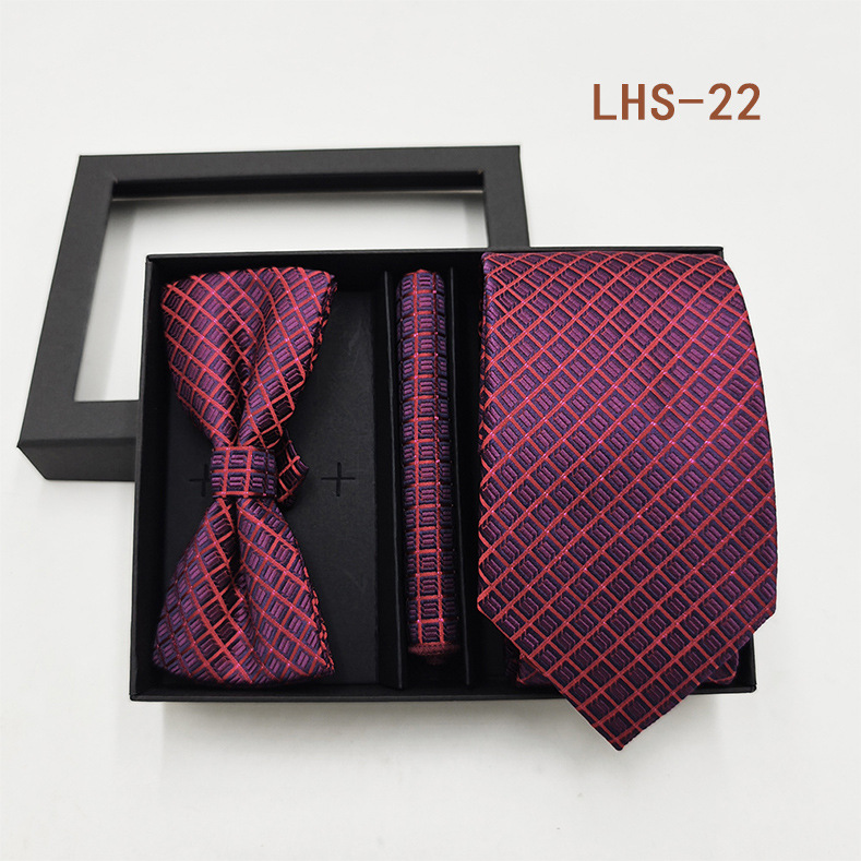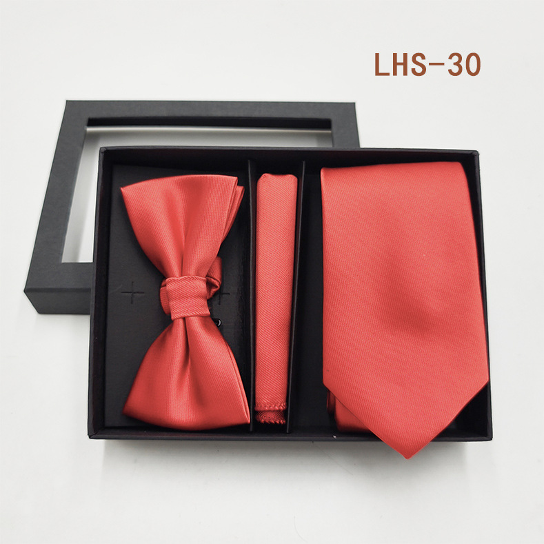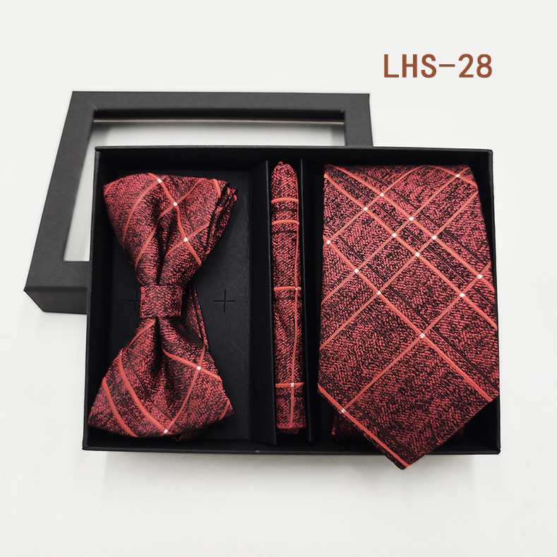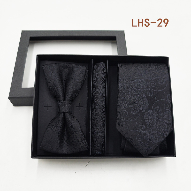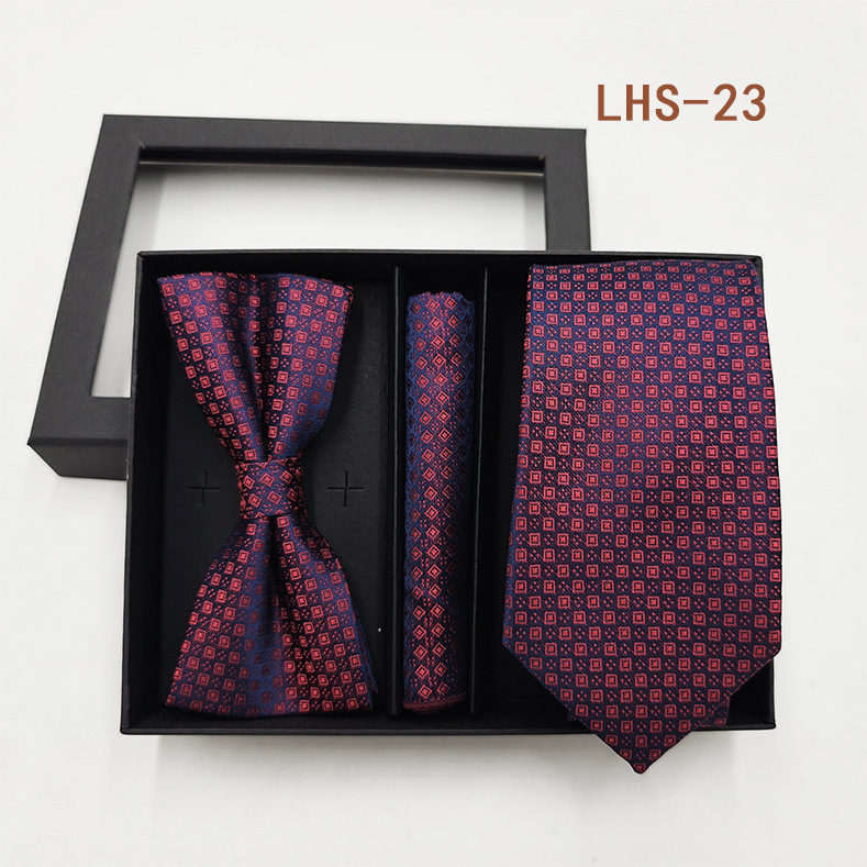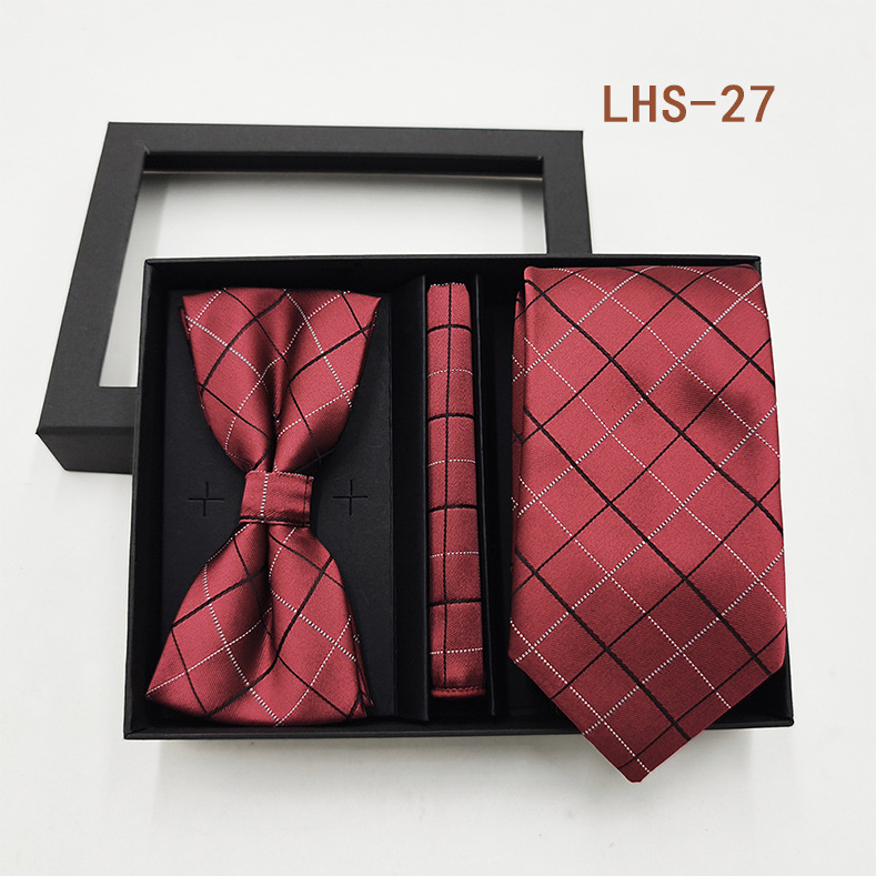 Groom Wedding Tie Bow Tie Handkerchief Gift Box Set Three-Piece Men's Formal Business Suit Accessories Set