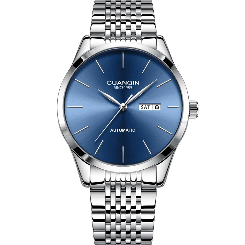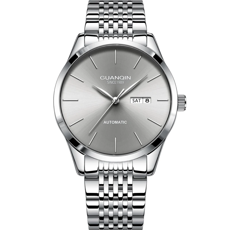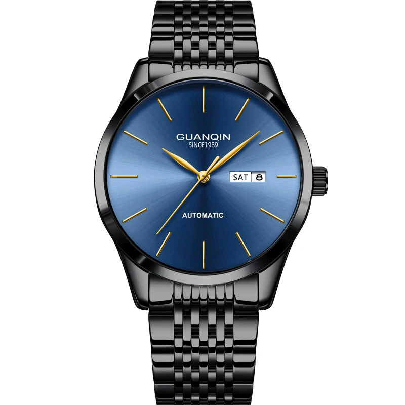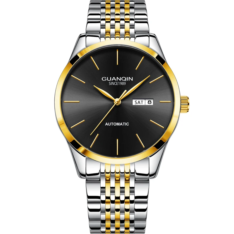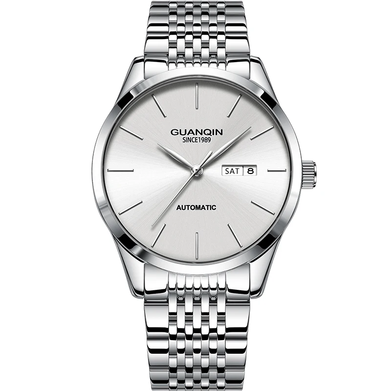 Orologio meccanico da uomo di lusso GUANQIN, movimento autentico, cassa in acciaio inossidabile, doppio calendario, orologi da lavoro e tempo libero, impermeabili fino a 50 m