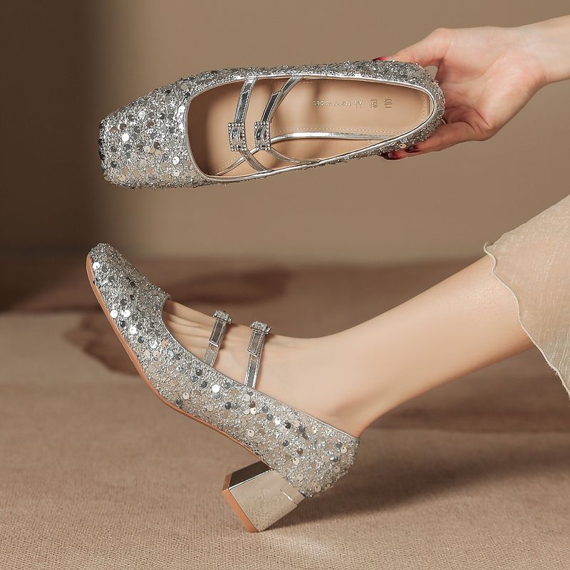 H923-1 Scarpe col tacco alto da donna, estive, di alta qualità, nuove, perle, Mary Jane, argento, splendide scarpe singole da donna