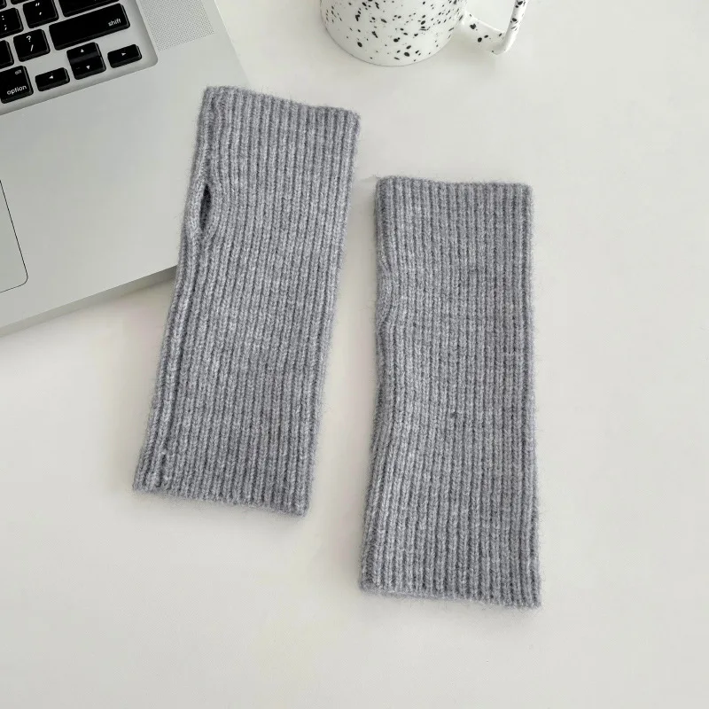 Guanti mezze dita Autunno/Inverno da donna edizione coreana lavorati a maglia calda a righe verticali in lana a metà taglio studentesco