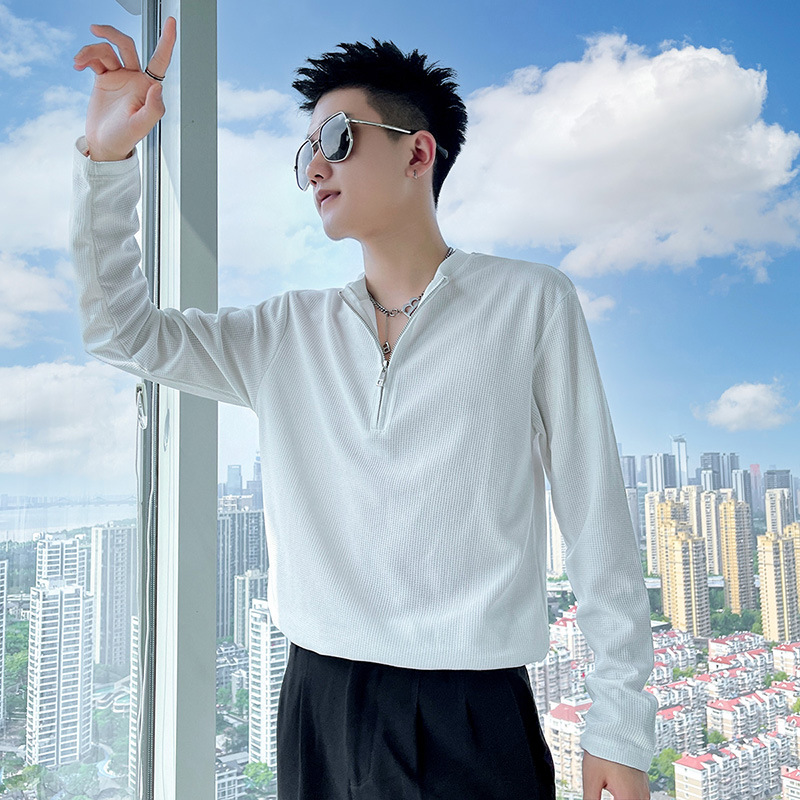 Half zippered long sleeved T-shirt for men's spring and autumn hoodies Instagram brand men's clothing interior layering 2022 new base T-shirt