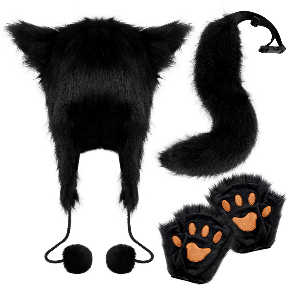 Halloween One piece cappello con palla di pelo coda di volpe peluche guanti con dita cosplay coda di animale set di oggetti di scena