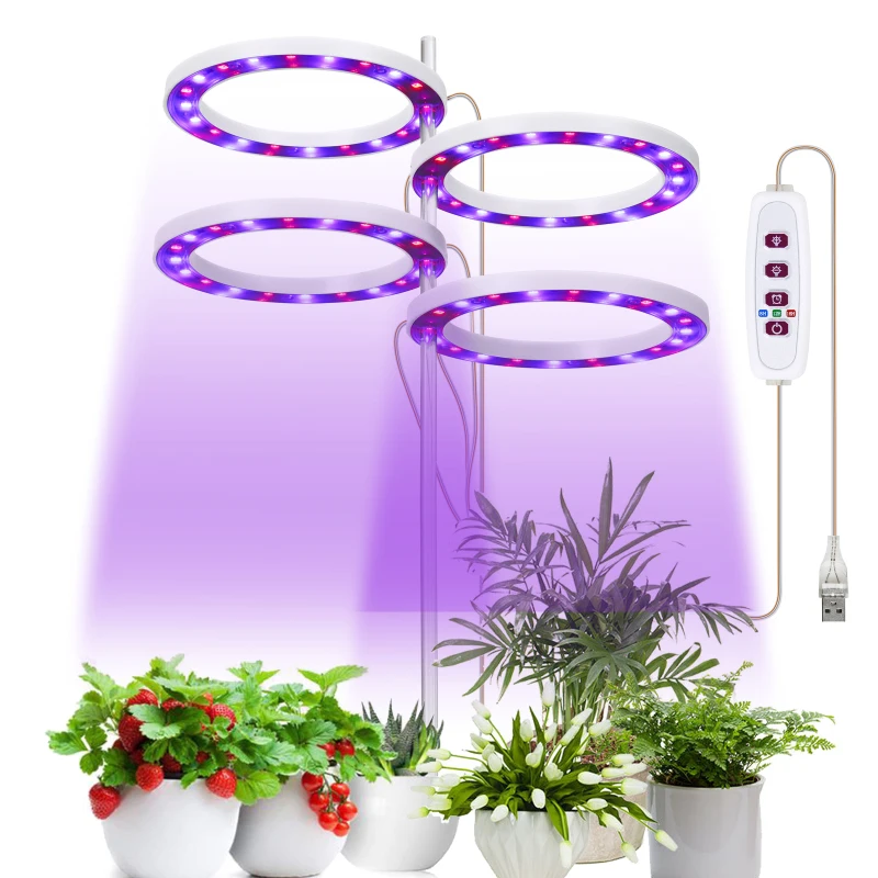Small Halo Angel Ring Grow Lights for Small Indoor Plants, LED Plant Light Full Spectrum, Height Adjustable Plant Growing Lamps with 5V Intelligent USB, 8/12/16H Timer, 5 Dimmable Levels (4 Ring)