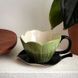 Set di tazze e piattini da caffè in ceramica a forma di tulipano dipinti a mano - Elegante forma irregolare per bar, ufficio e casa (320 ml, nero/rosa/verde)