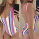 Happybuyner Costume da bagno intero da donna a righe colorate Costume da bagno bikini non imbottito con fasciatura da donna Costume da bagno bikini a V profondo