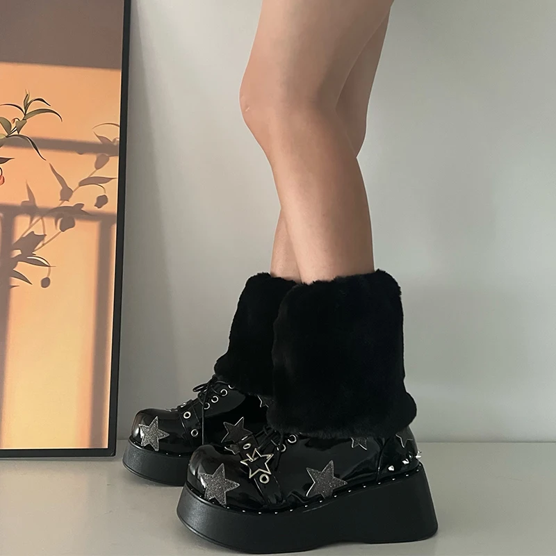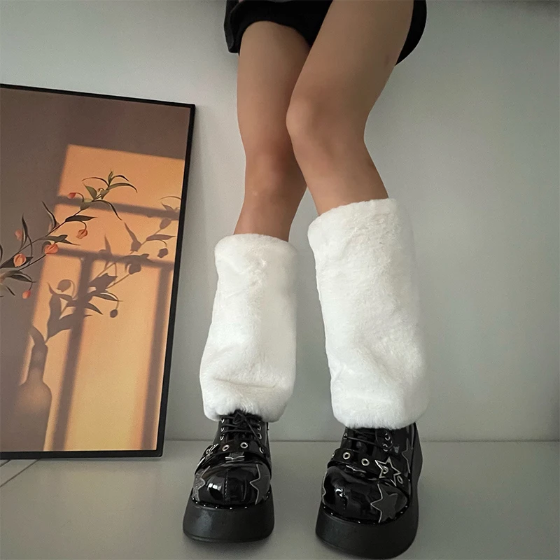 Haruku Y2k Moda Ragazze Finta Pelliccia di Coniglio Scaldamuscoli Donna Goth Punk Rave Cyber Fluffies Costume Leggings Copristivali