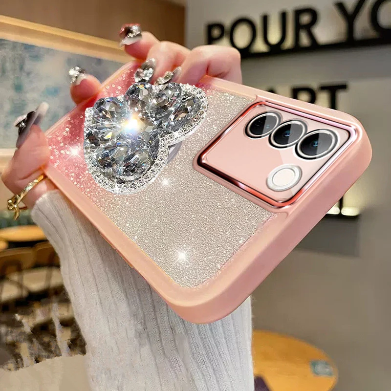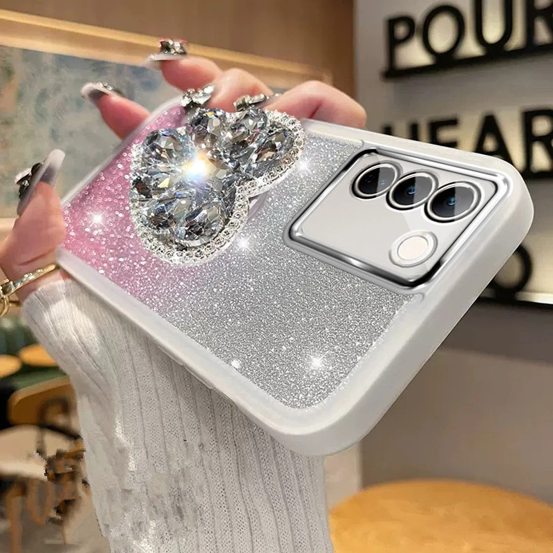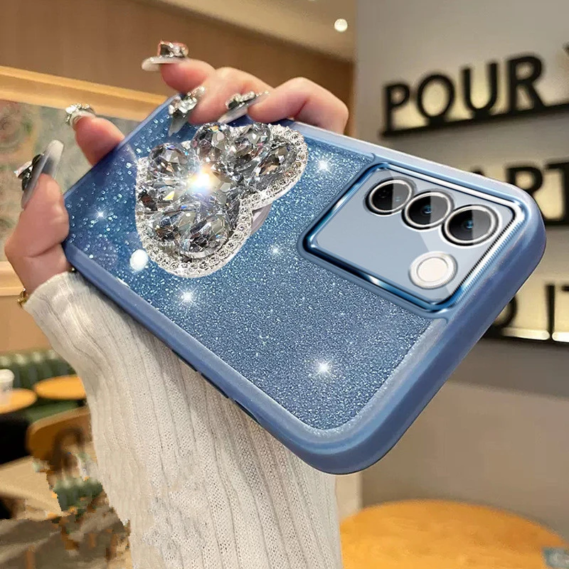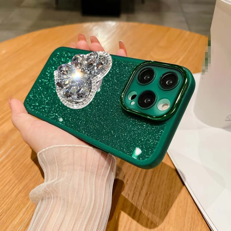 Custodia per telefono con supporto per cuore con diamanti per iPhone 15 max 14 pro 13 12pro 11 XS Max XR 7 8 plus coque Glitter in silicone