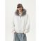 Felpa con cappuccio e cerniera in stile retrò americano da uomo, con collo in pelliccia, da uomo e da donna, corta, in tinta unita, Cleanfit