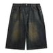 Abbigliamento maschile Hong Kong Style Retro Distressed Uomo Pantaloncini in denim larghi a gamba larga alla moda Estate pigro Stile nostalgico Colore Vintage Seven Point