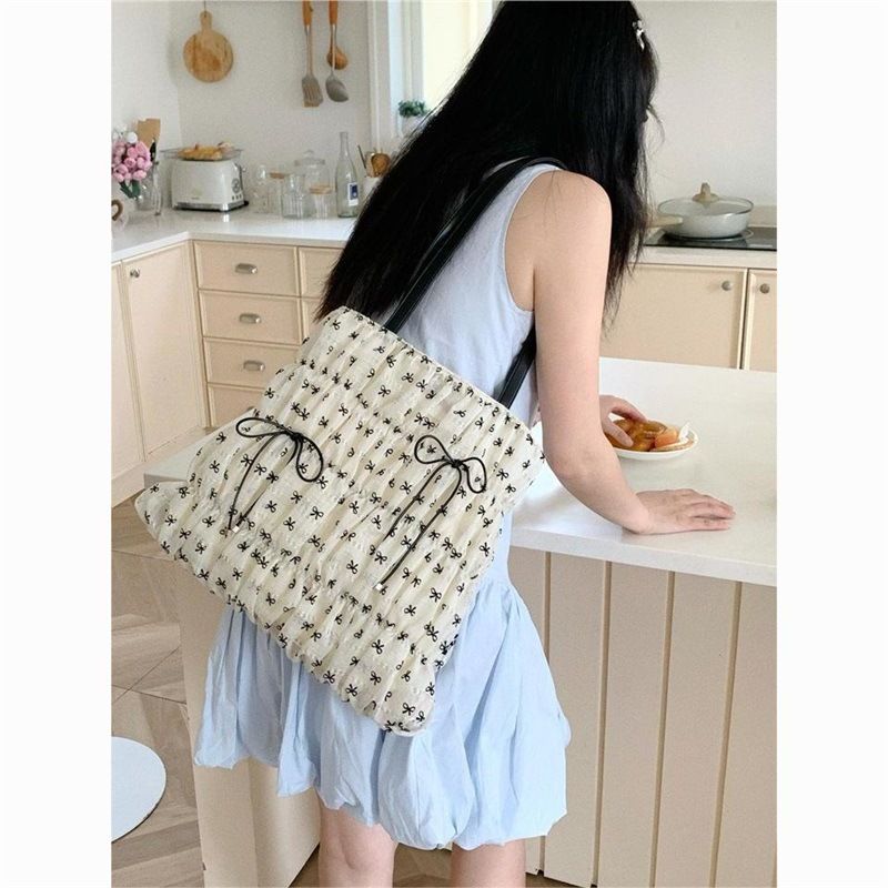 High end 'Southern French Love Letter' tote bag for women, large capacity, lightweight, pleated bow shoulder bag