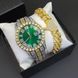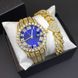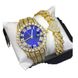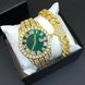 Set di bracciale cubano con catena in oro placcato oro di alta qualità con diamanti, orologio al quarzo con calendario per donna, orologio da polso