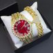 Colore : Orologio con cinturino in oro placcato rosso + bracciale a cuore + scatola 1
