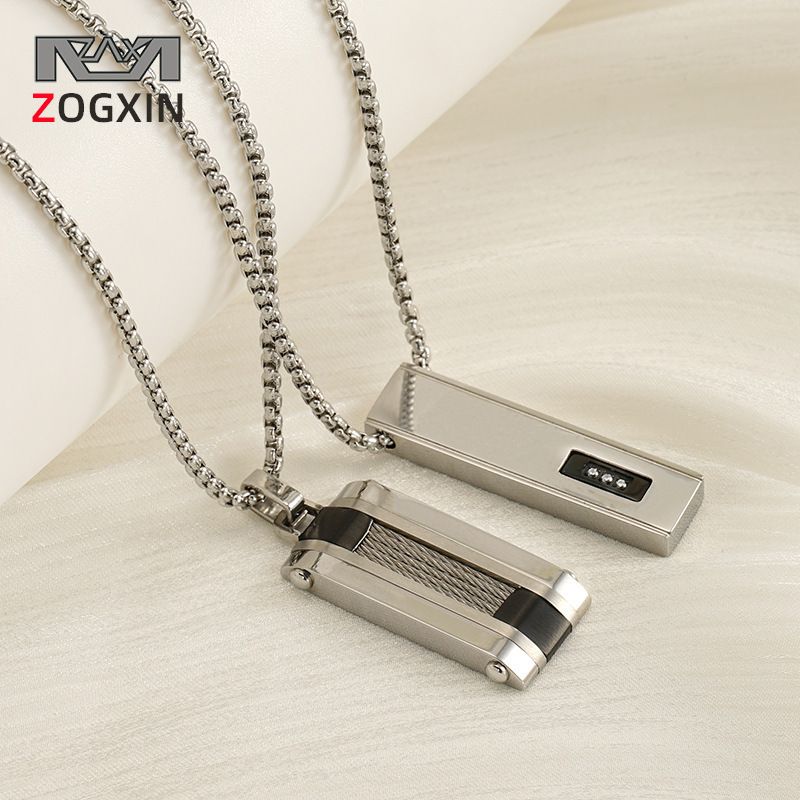 Hip-Hop Trendy Cool High-End Square Pendant Rectangle Long Strip Zircon Niche Cool Trendy Unisex Necklace