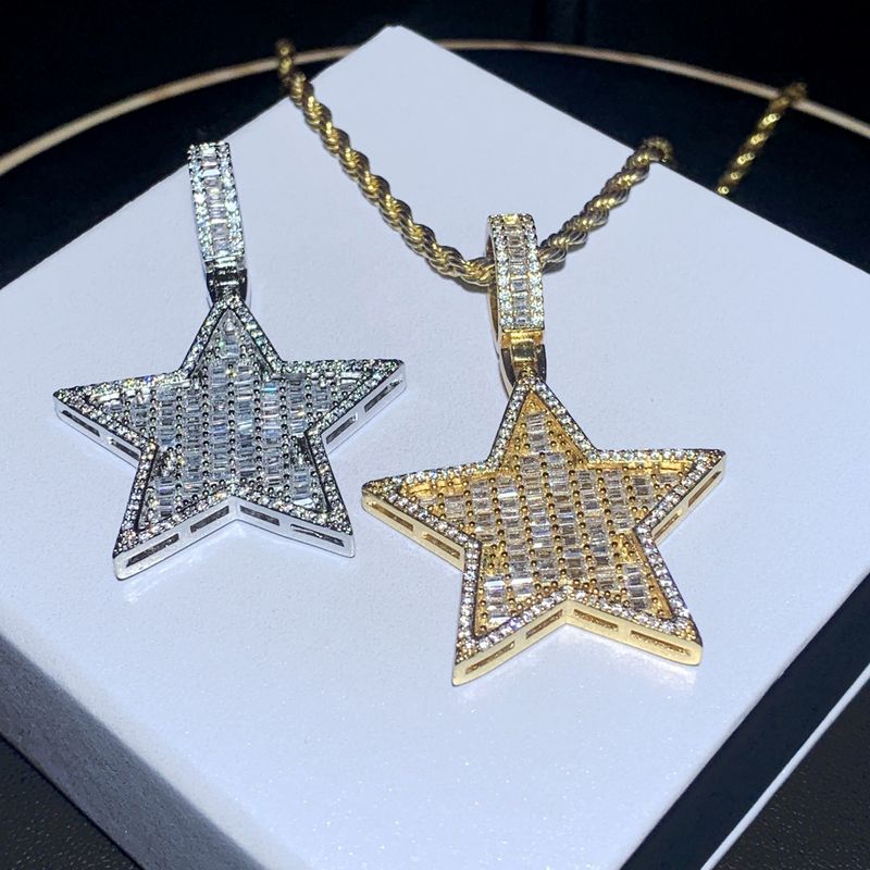 Collana con ciondolo a forma di stella a cinque punte in rame con zirconi e diamanti, accessori alla moda e alla moda per uomo.