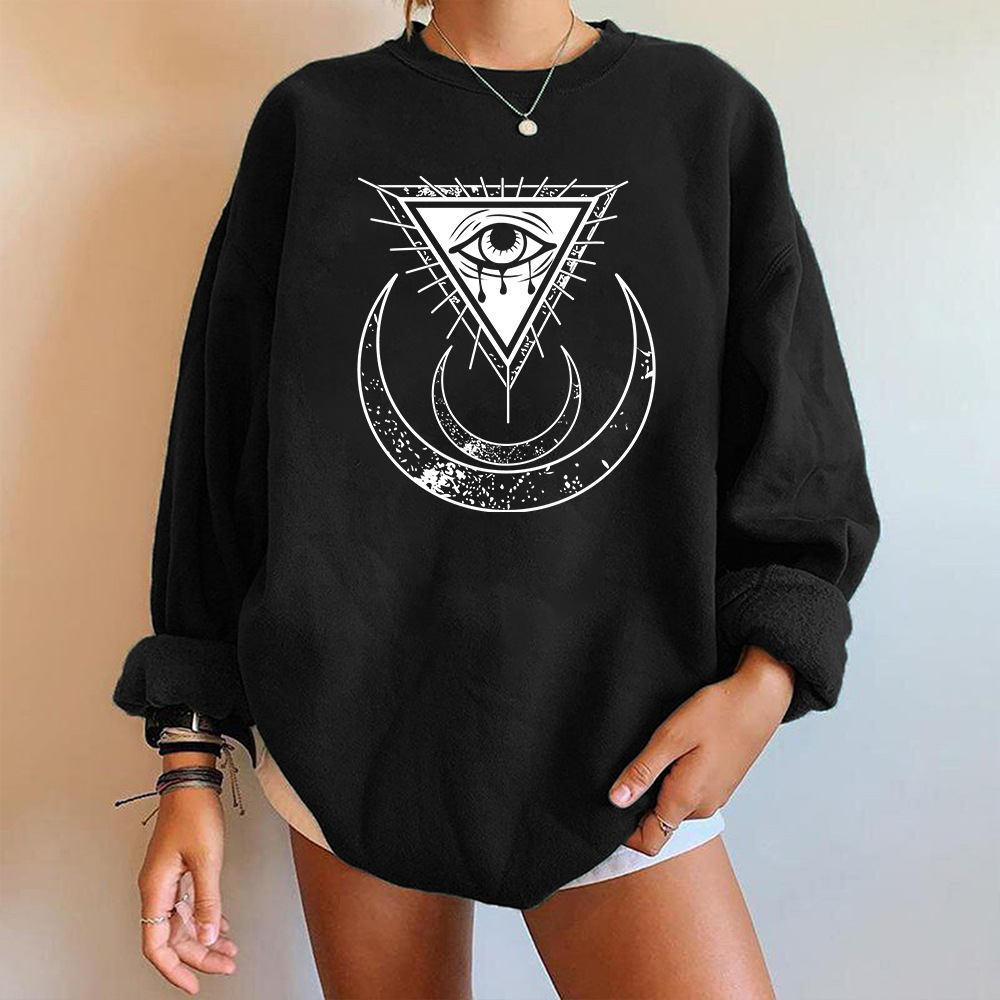 Horror Witch Element Moon Third Eye Off Shoulder Brushed Sweater Round Neck Long Sleeve