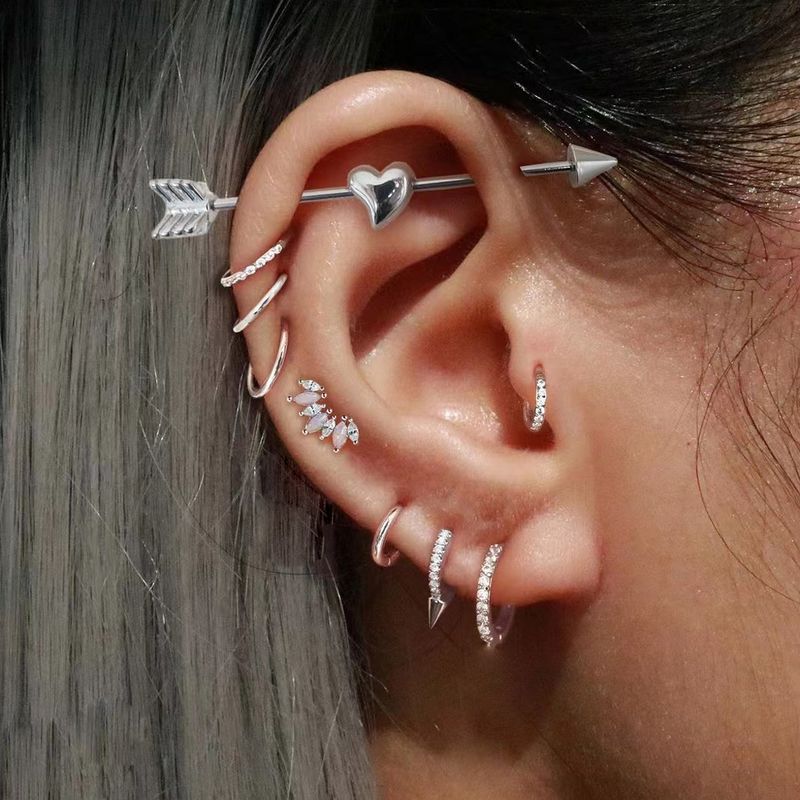 Hot Ing Accessori in acciaio inossidabile, brezza fresca, piercing all'inserimento dell'amore, aghi per le orecchie e orecchini a linea diagonale