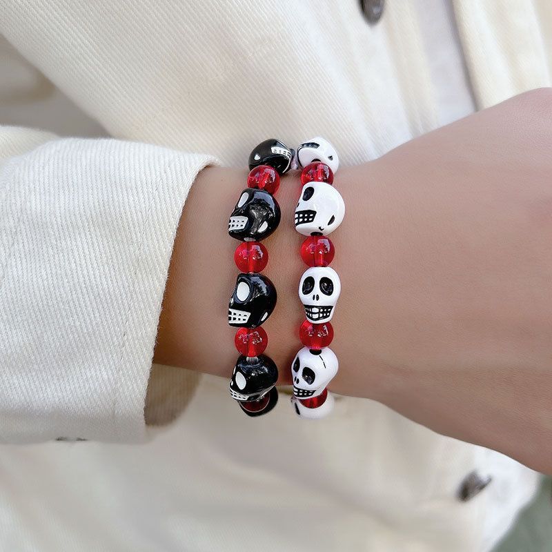 Hot Selg Red Beaded Skull Bracelet Elastic Rope Punk Hip Hop Cool Bracelet Retro Dark Halloween Accessories