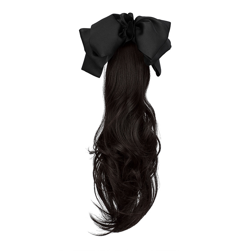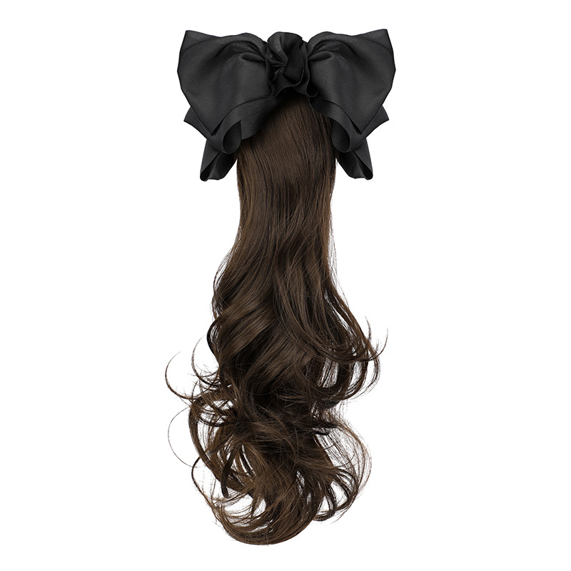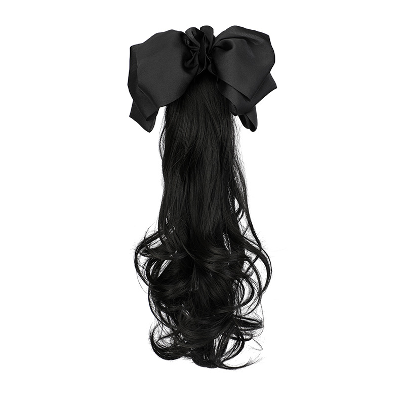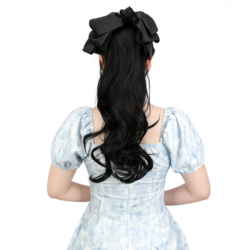 Nuova parrucca di vendita calda con fiocco nero e piccola clip sulla coda di cavallo, capelli ricci lunghi, copricapo rosso Internet, accessori per capelli realistici e naturali