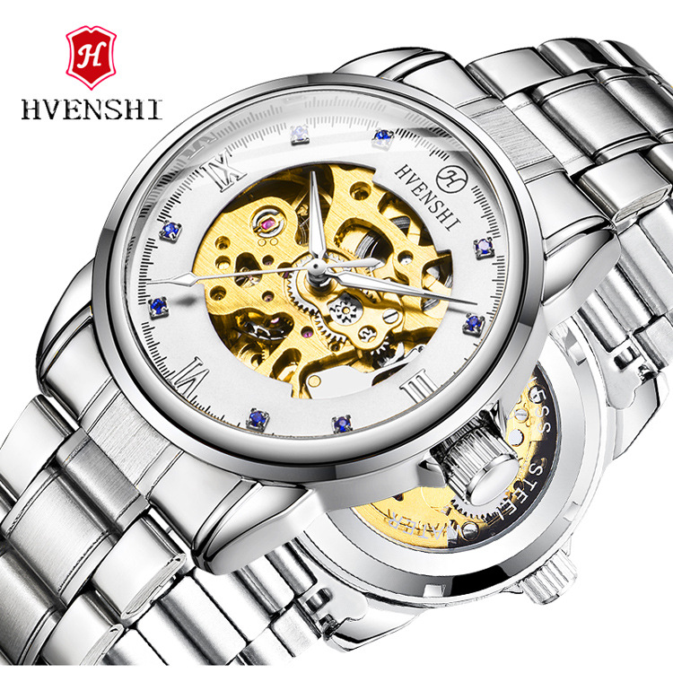 Huangshi Nuovo Orologio da Uomo con Cinturino in Acciaio Meccanico Automatico e Cavo alla Moda