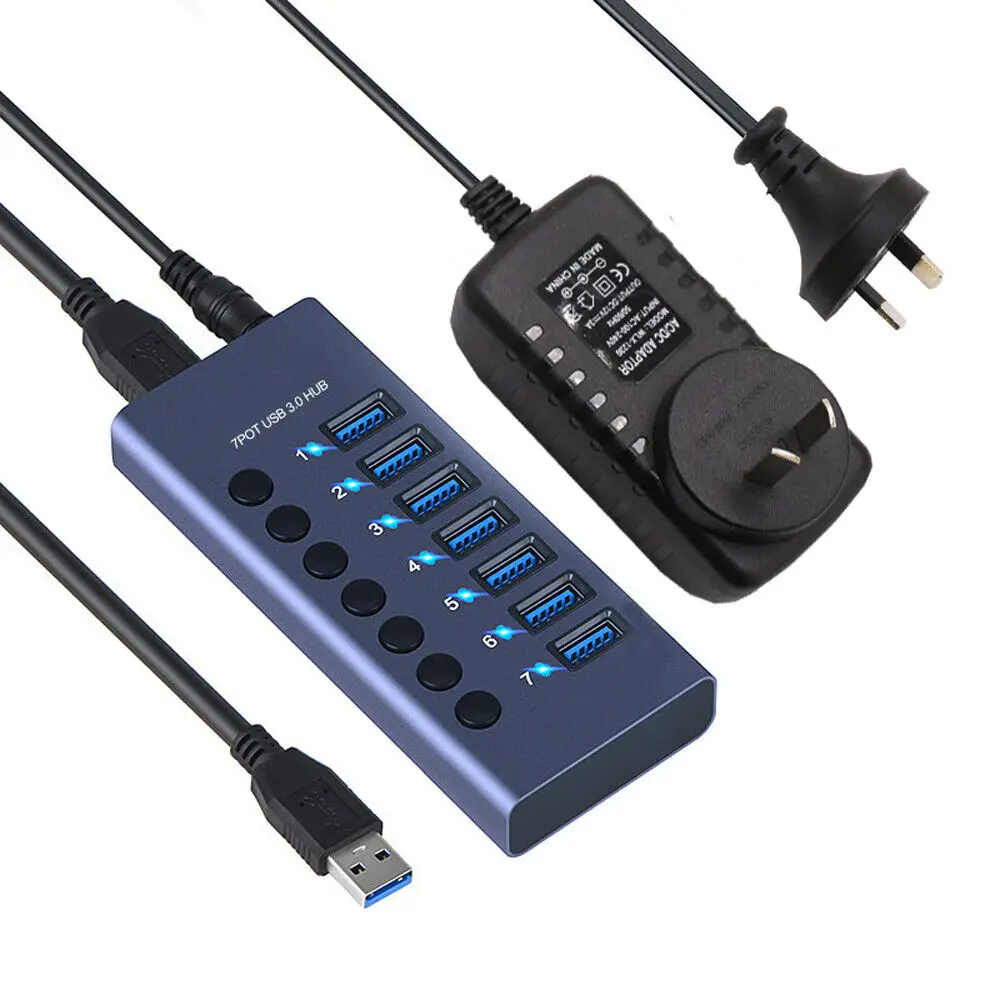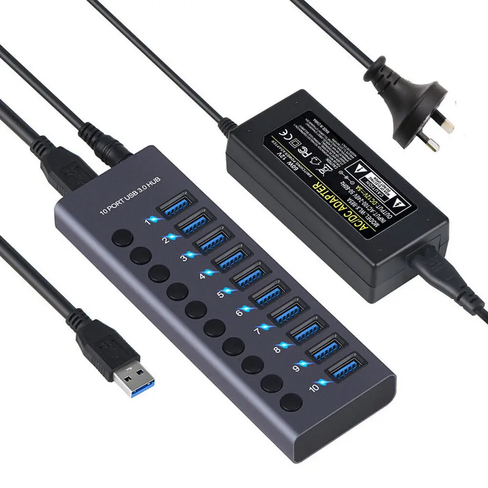 Hub 3.0 Splitter multi USB ad alta velocità AU 4/7/10 porte 3 Hab Adattatore di alimentazione Cavo lungo di ricarica rapida con più
