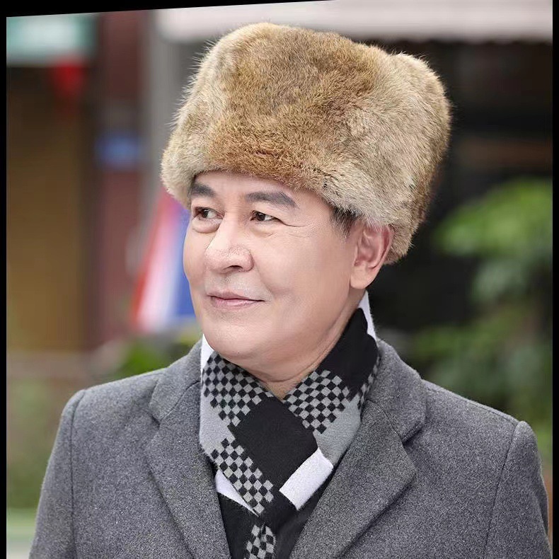 Imitation rabbit hair hat for men and women, middle-aged elderly, cotton hat for winter warmth and ear protection, Lei Feng hat, fox fur grass old man hat