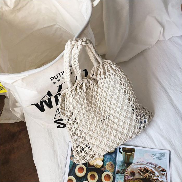 (Including Inner Bag) Cotton Rope Woven Women's Bag Summer Hollow Fishnet Shoulder Bag Casual Vacation Handbag Mesh Bag