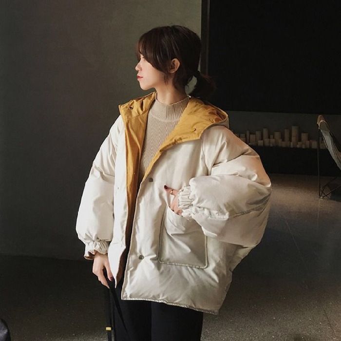 Indossare cappotti di colori contrastanti su entrambi i lati, giacche invernali con cappuccio, cappotti larghi in cotone spesso, abbigliamento femminile
