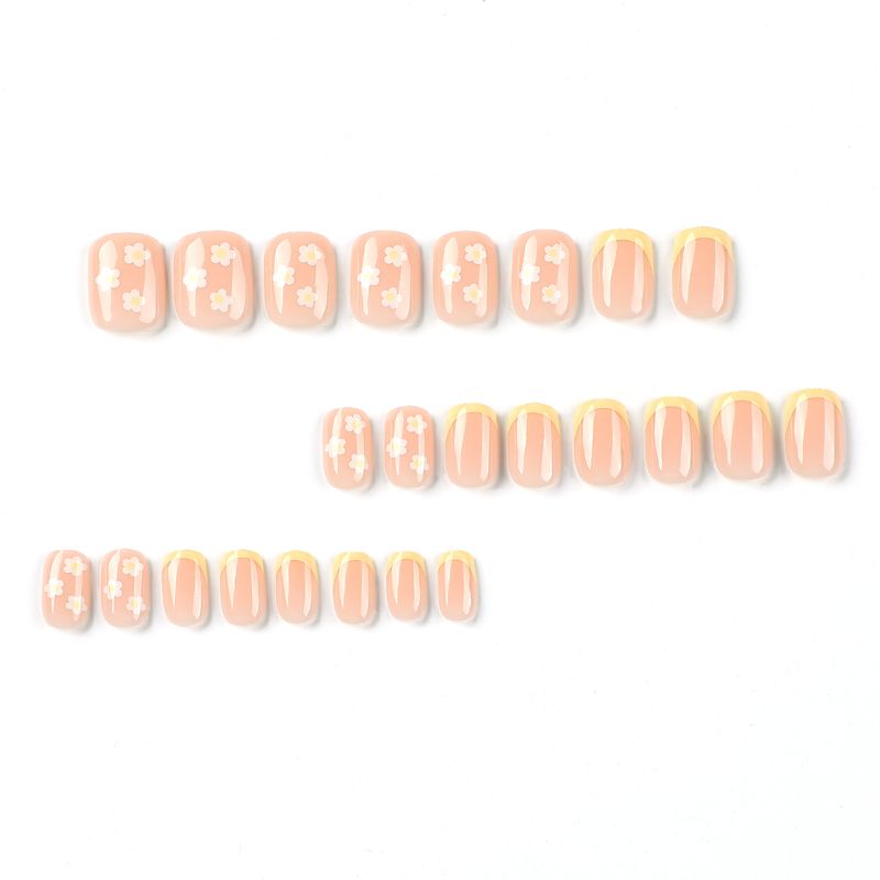 Wearing style nail patches, yellow French white flower nail patches, finished nail products, nail patches, wearing style nail patches, nail enhancements