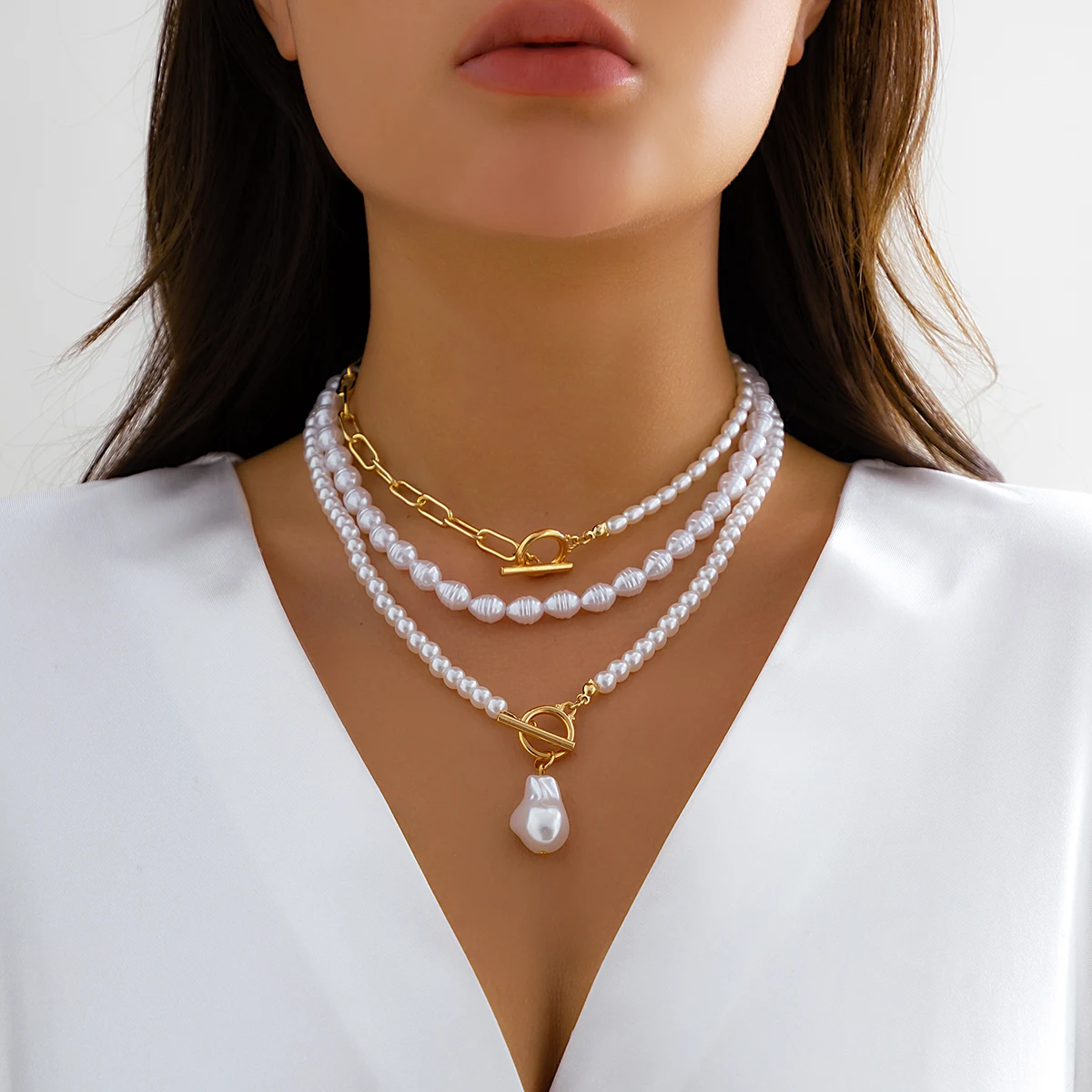 Ingemark More Layer Imitazione Perla ot Fibbia Collana Pendente Donna Sposa Gotico Collana di Perle y2k Accessori Gioielli da Collo