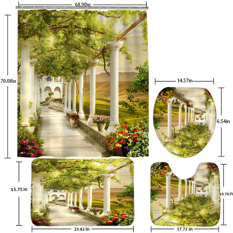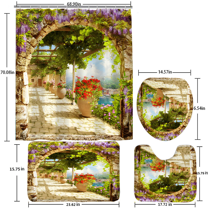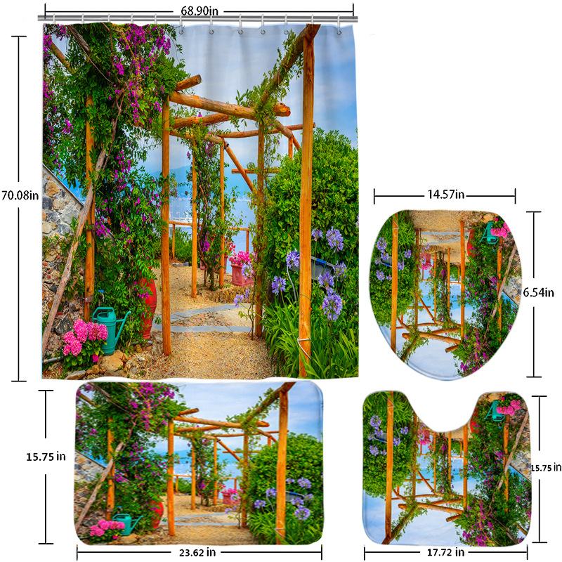 Tenda da doccia per bagno INS Nessuna perforazione Tenda per barriera per doccia da bagno Cortile con vista floreale Tenda da doccia