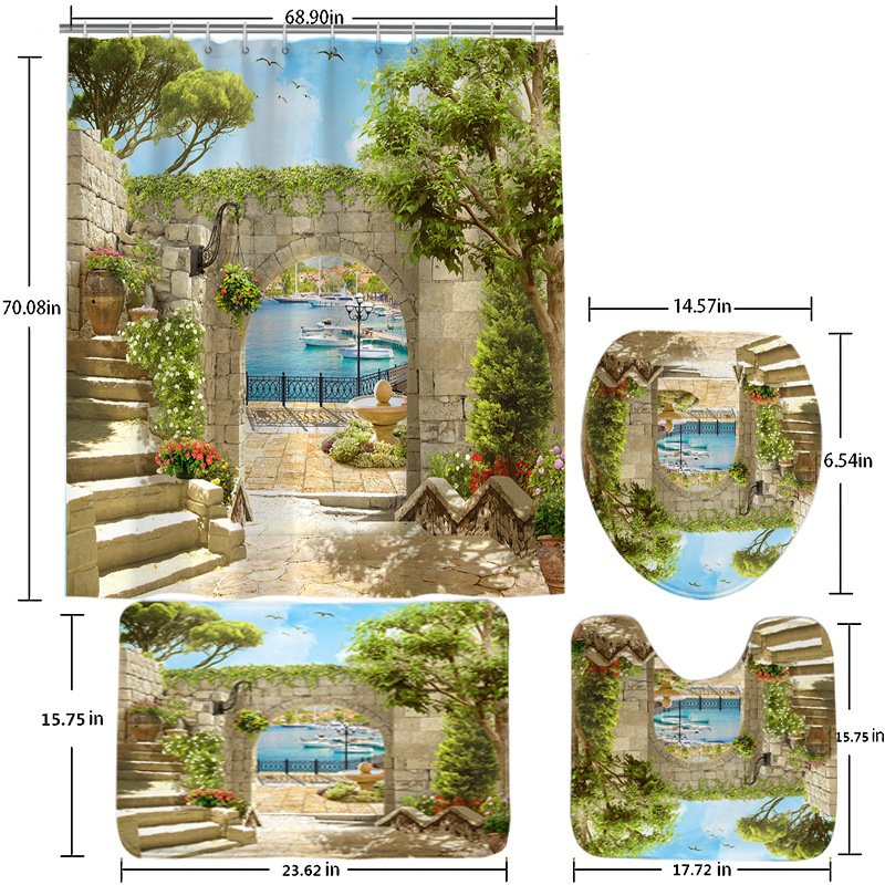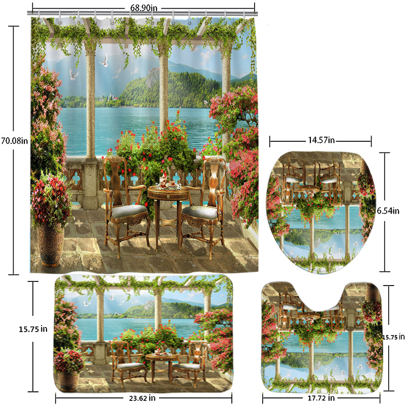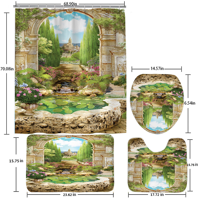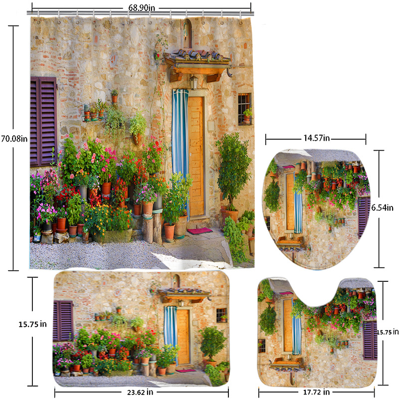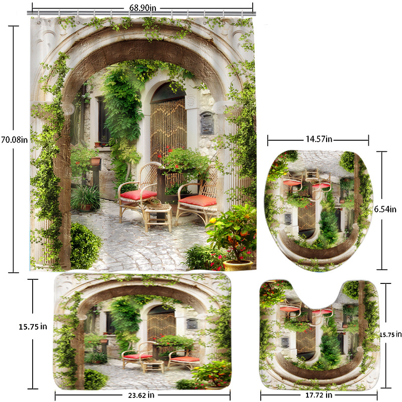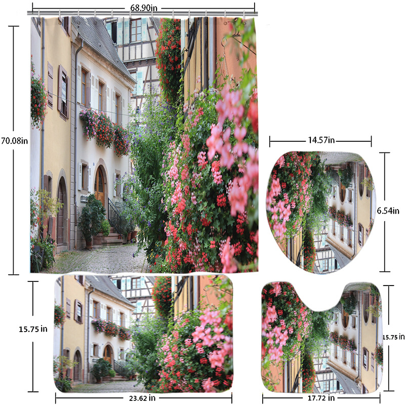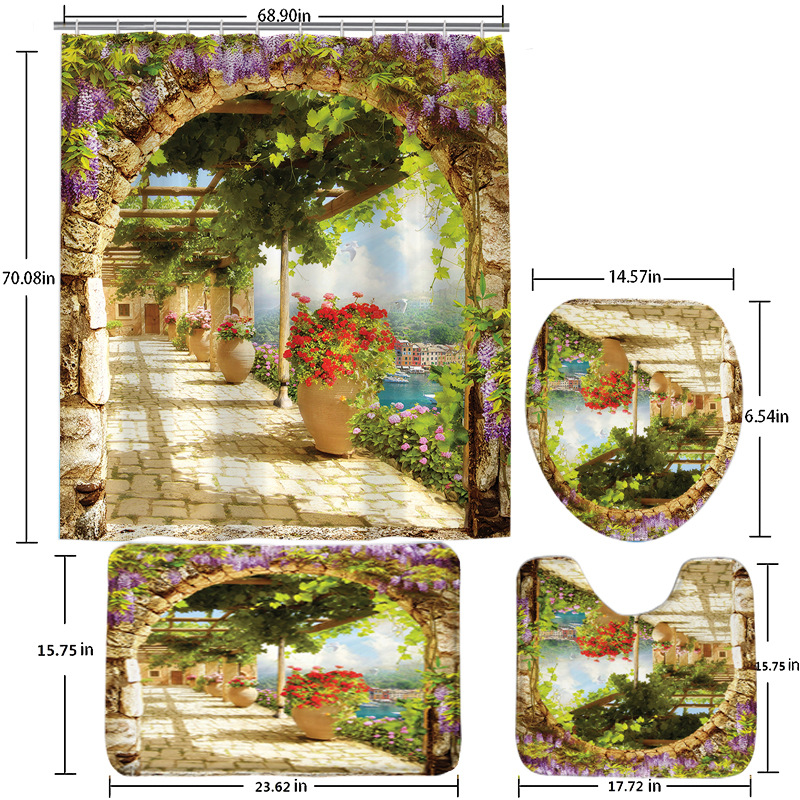 INS Bathroom Shower Curtain No Perforation Bathroom Shower Barrier Curtain Courtyard Flower View Shower Curtain