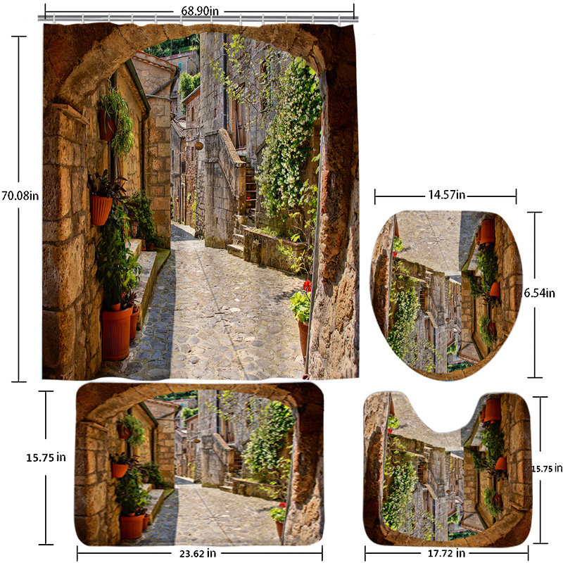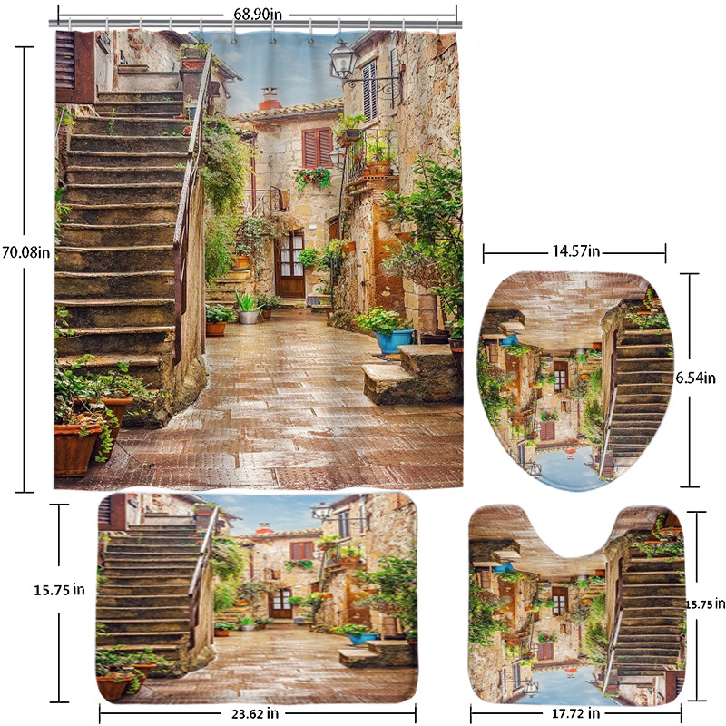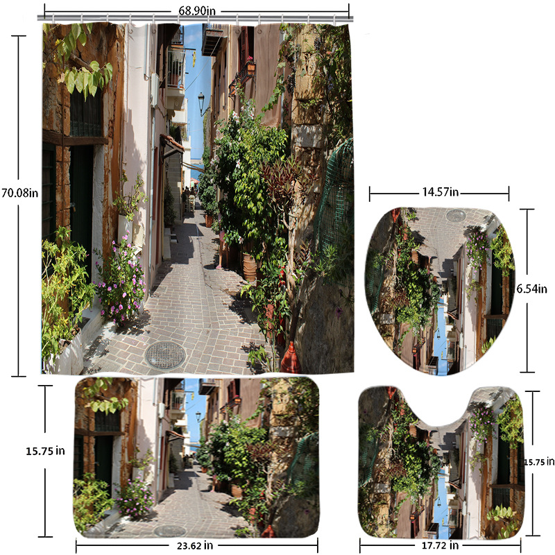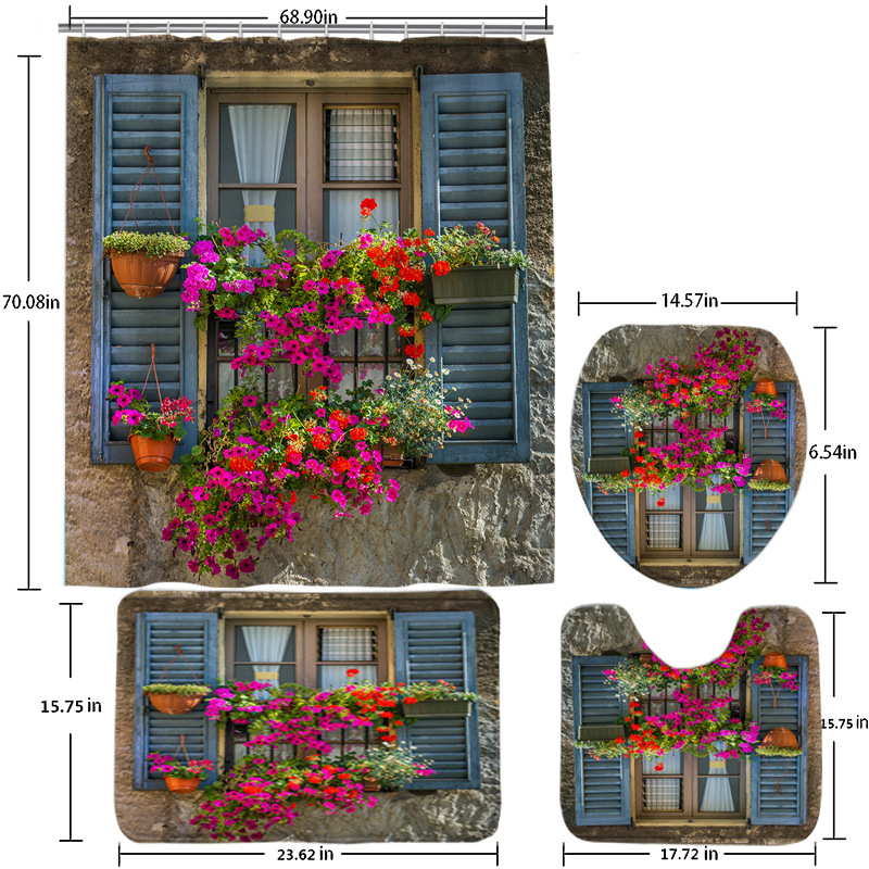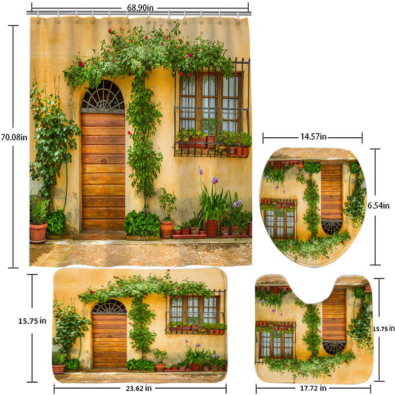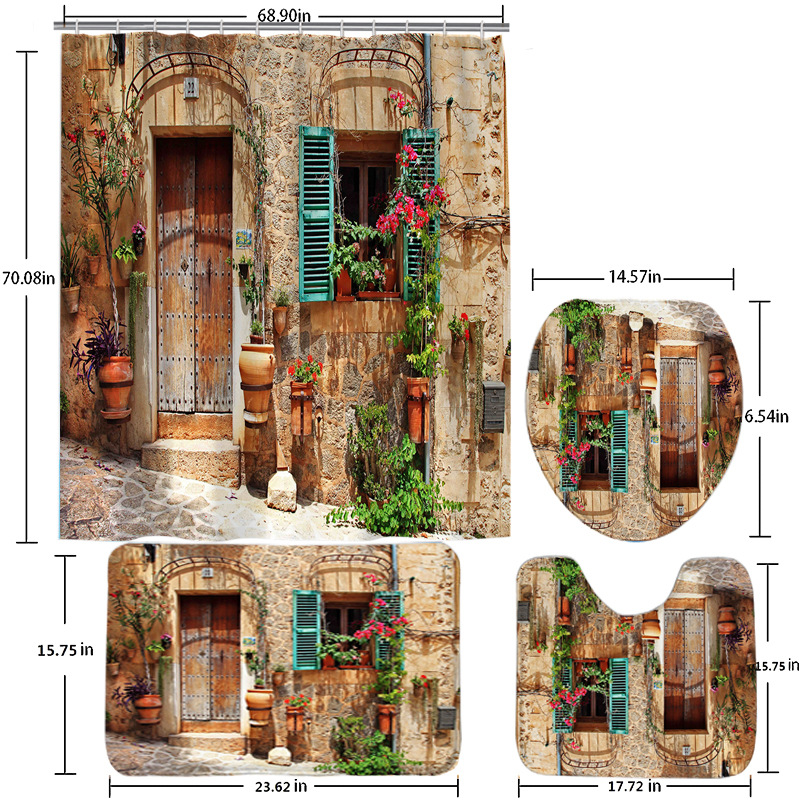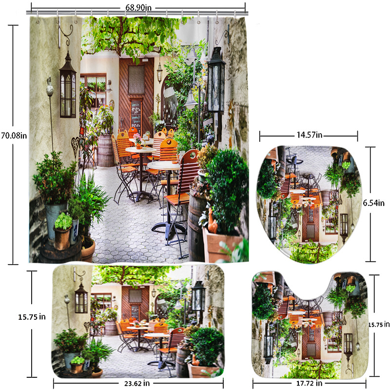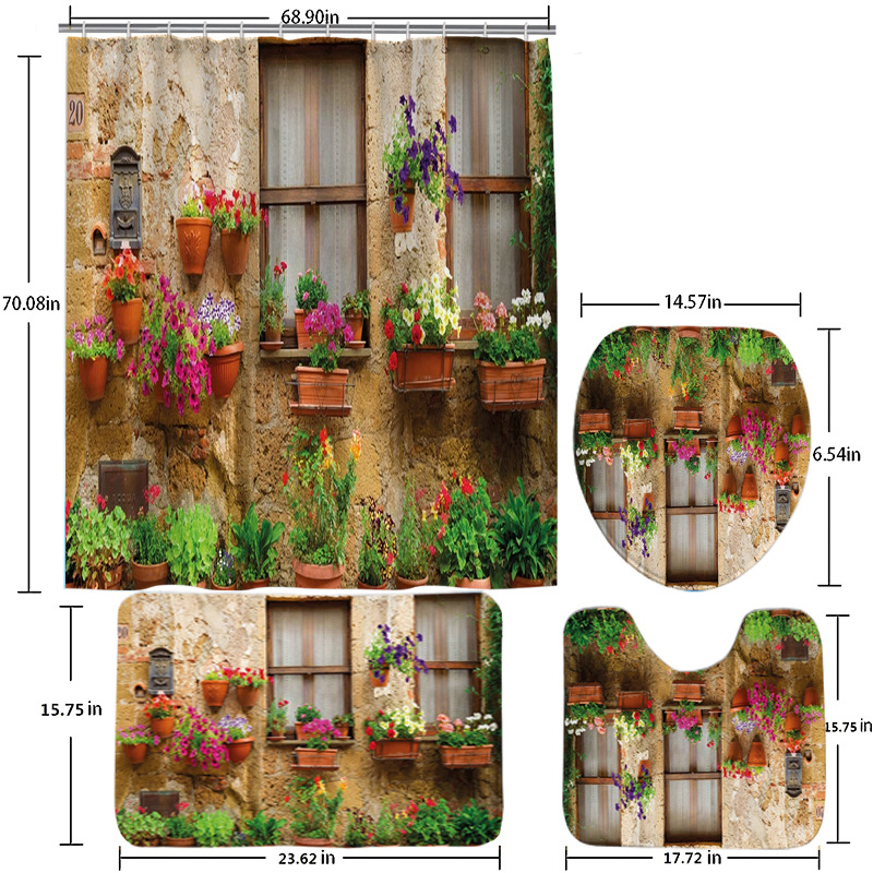 INS Bathroom Shower Curtain No Perforation Bathroom Shower Barrier Curtain Courtyard Flower View Shower Curtain