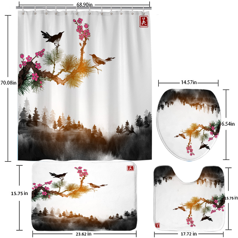 Set di tende da doccia in due pezzi (180 * 180 + tappetino 45 * 75)