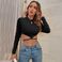 INS Style 2023 T-shirt a maniche lunghe in maglia a collo alto da donna slim fit ultra corta