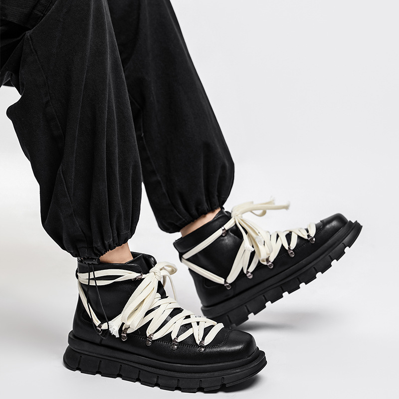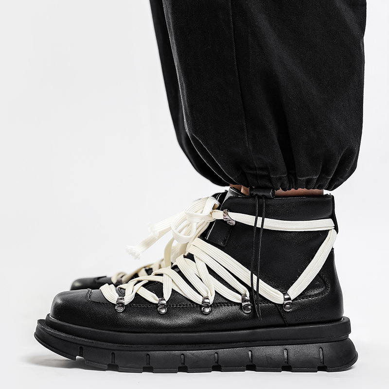 Instagram Martin High British Style Vera pelle Suola spessa Parte superiore nera Cinturino rialzato Autunno Piccolo supporto da uomo