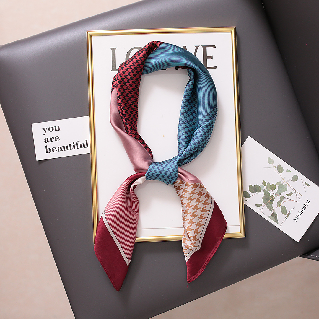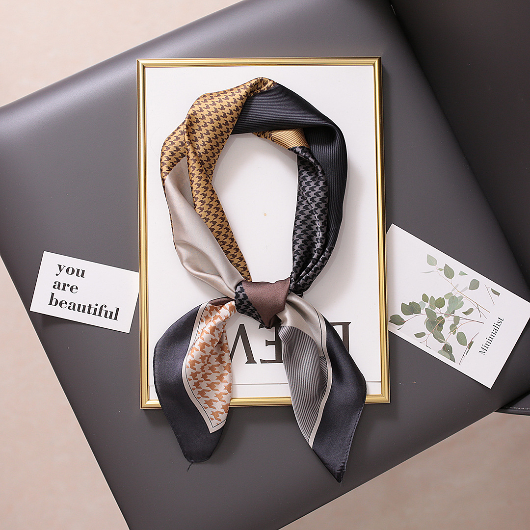 Instagram style classic thousand bird grid scarf, versatile in spring, summer, and autumn, professional small square scarf for women, Korean scarf and headband