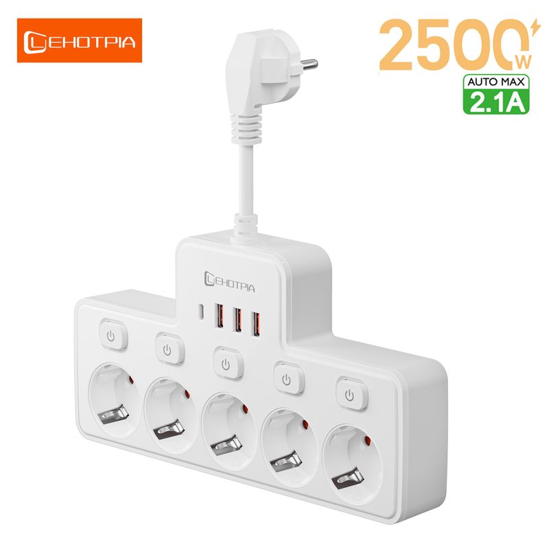 Interruttore indipendente CA UE, multipresa da parete, presa standard europea, filtro di rete con ricarica USB C