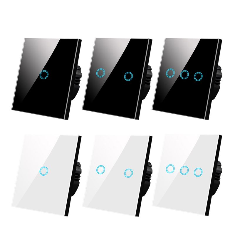 Interruttore touch Szaoju EU AC100-240V Pannello retroilluminato a LED in cristallo temperato Interruttori sensoriali da parete 1/2/3 gang