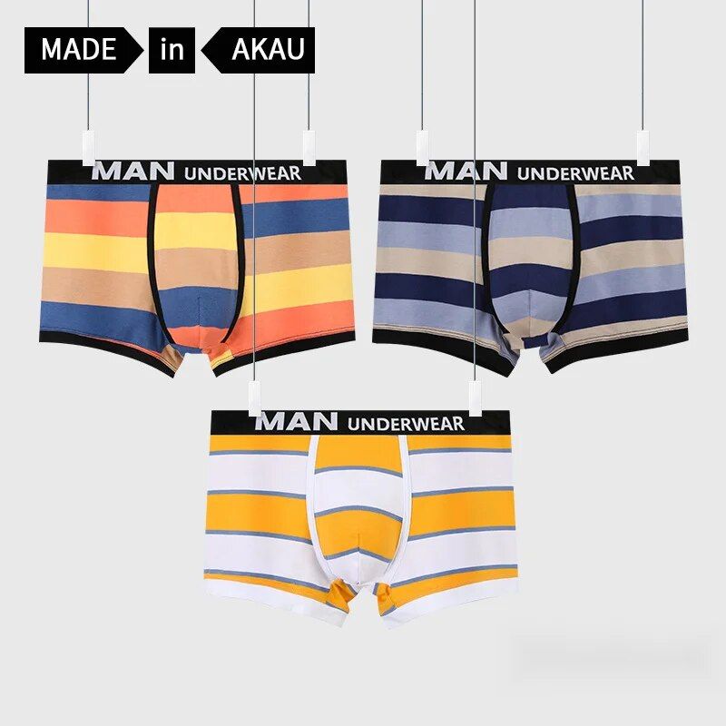 Intimo da uomo alla moda del 2024, pantaloni ad angolo piatto, cotone, traspirante estivo, sportivo, personalizzato, carino e strisce sul davanti