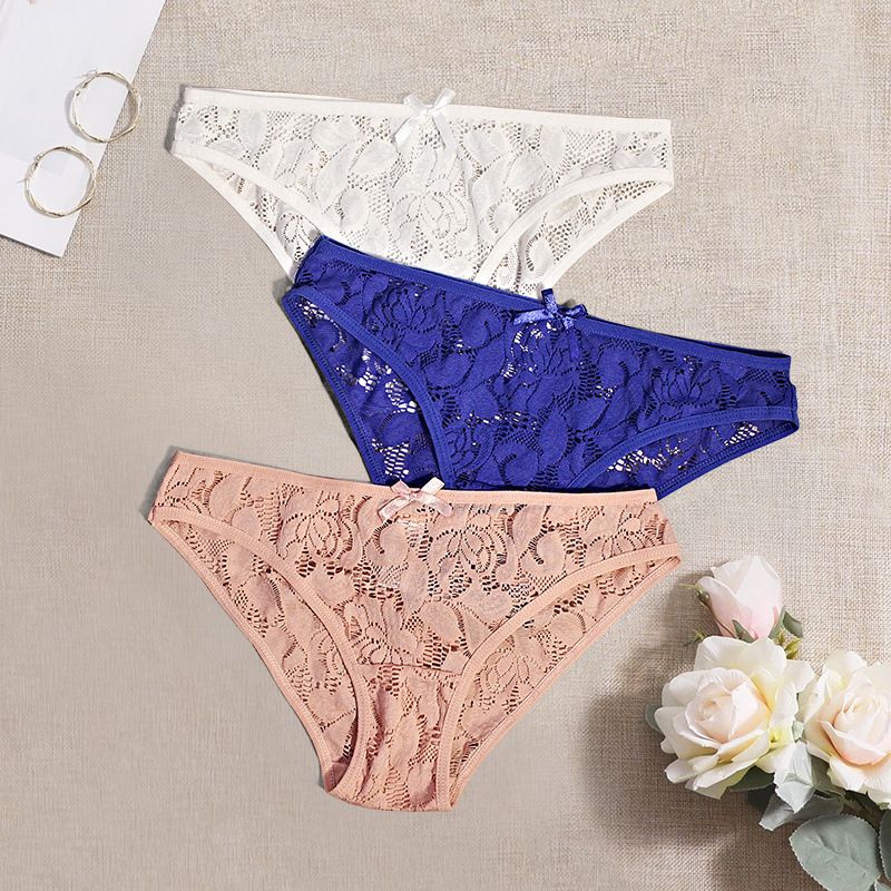 Bow tie girl lace underwear hollow waist flower women's underwear large size underwear