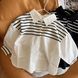 Is~Korea versio di Ramie per bambini a righe verticali ragazzi ragazze temperamento, cardigan con risvolto per pubblicità di Sprig