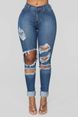 jeans aderenti strappati elastici a vita alta per donna