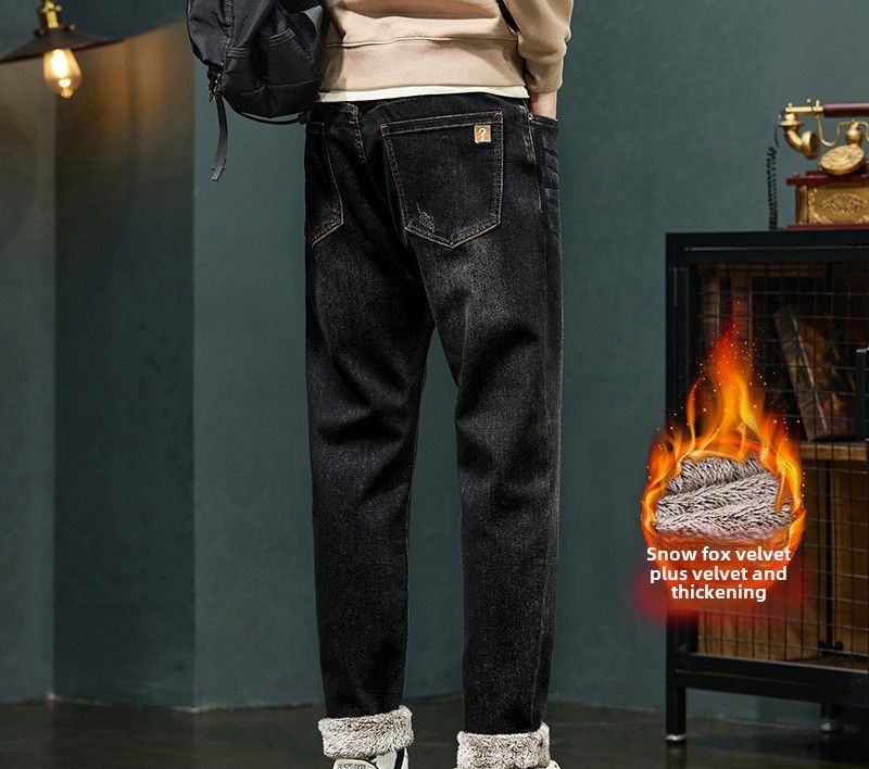 Jeans invernali Snow Fox Velvet da uomo ingrassati e ispessiti elastici aderenti, piccoli jeans da uomo di grandi dimensioni